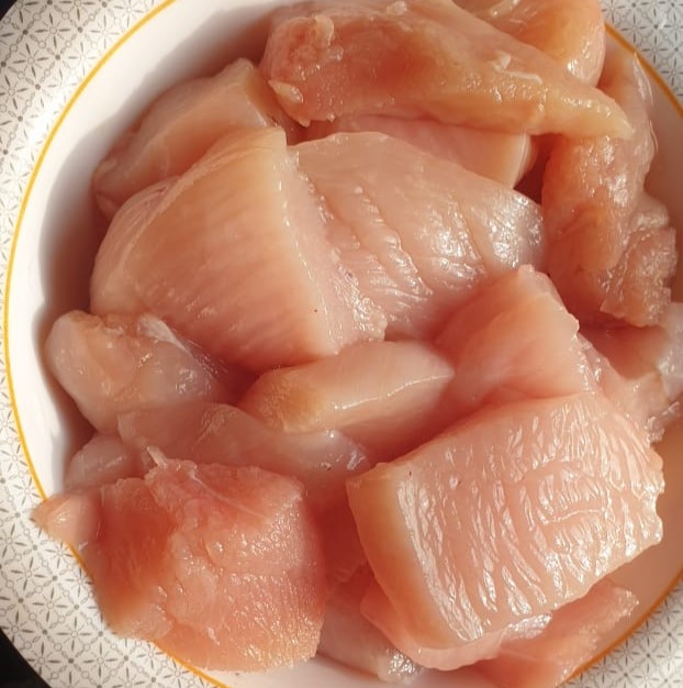 First I washed the chicken breast Properly with clean Water cut it into Small cube then I place the Chicken in bowl. I add all the Spices ginger Paste garlic paste Soy Sauce Vinegar salt flour & Vorn flour.