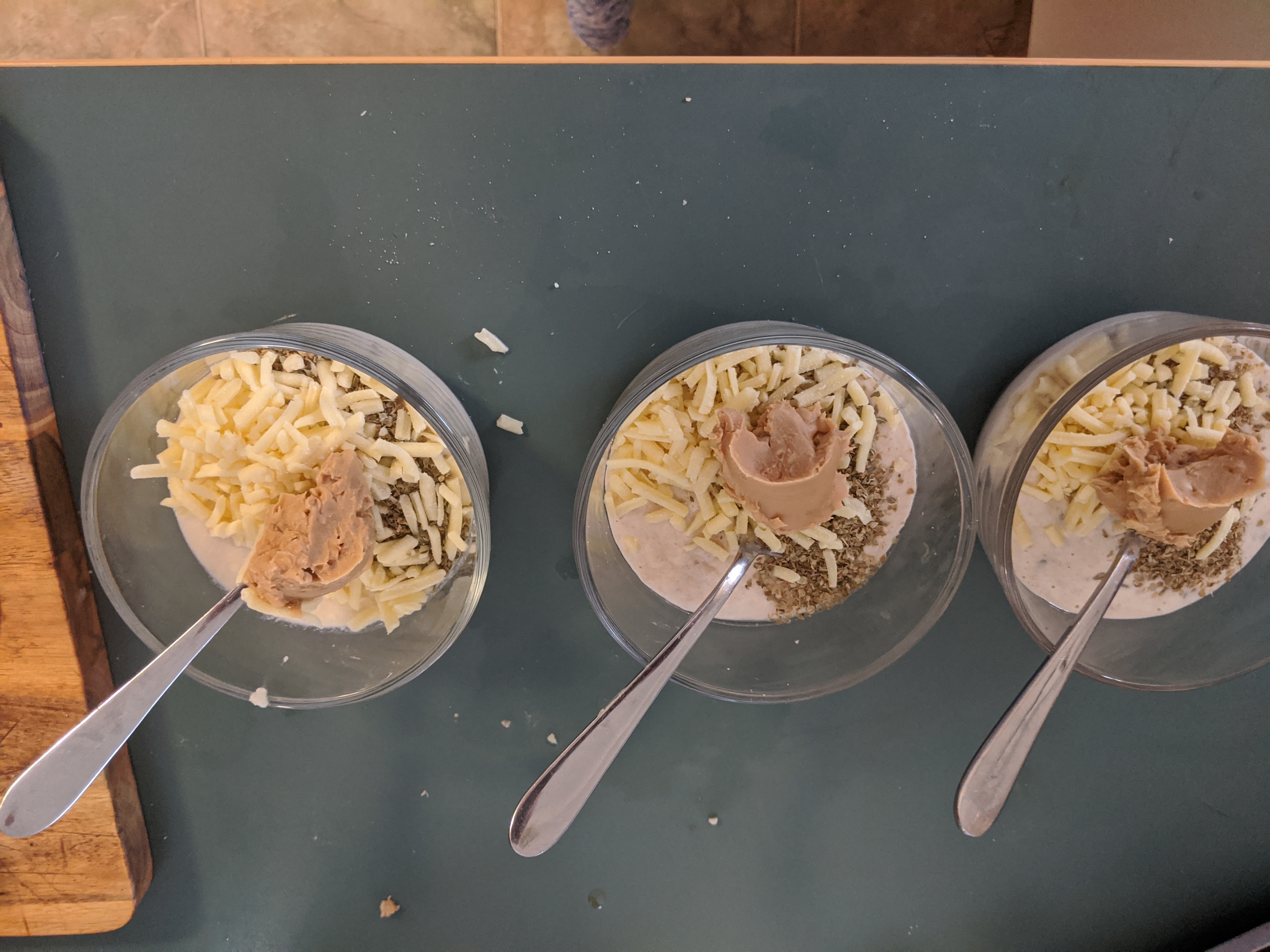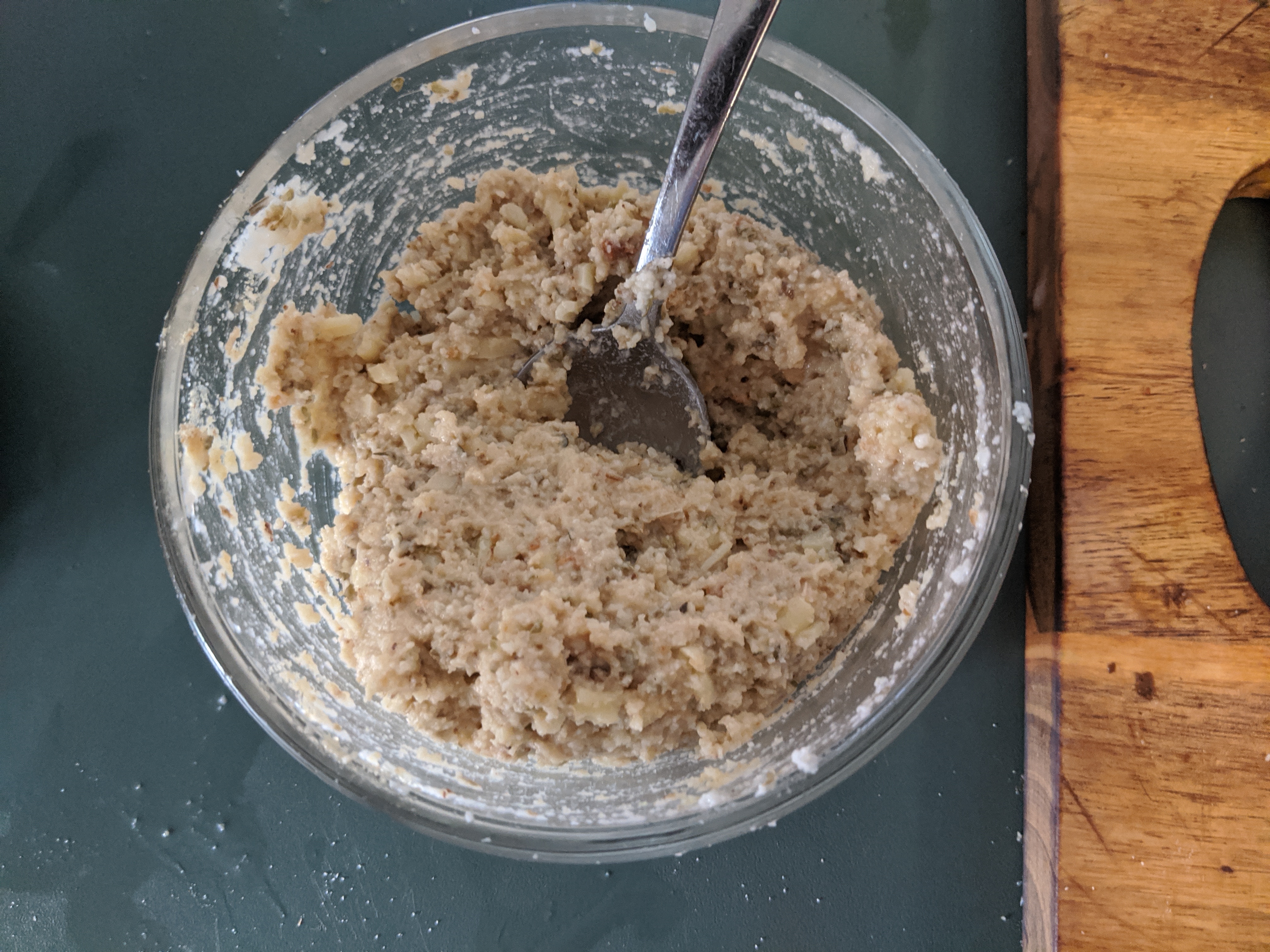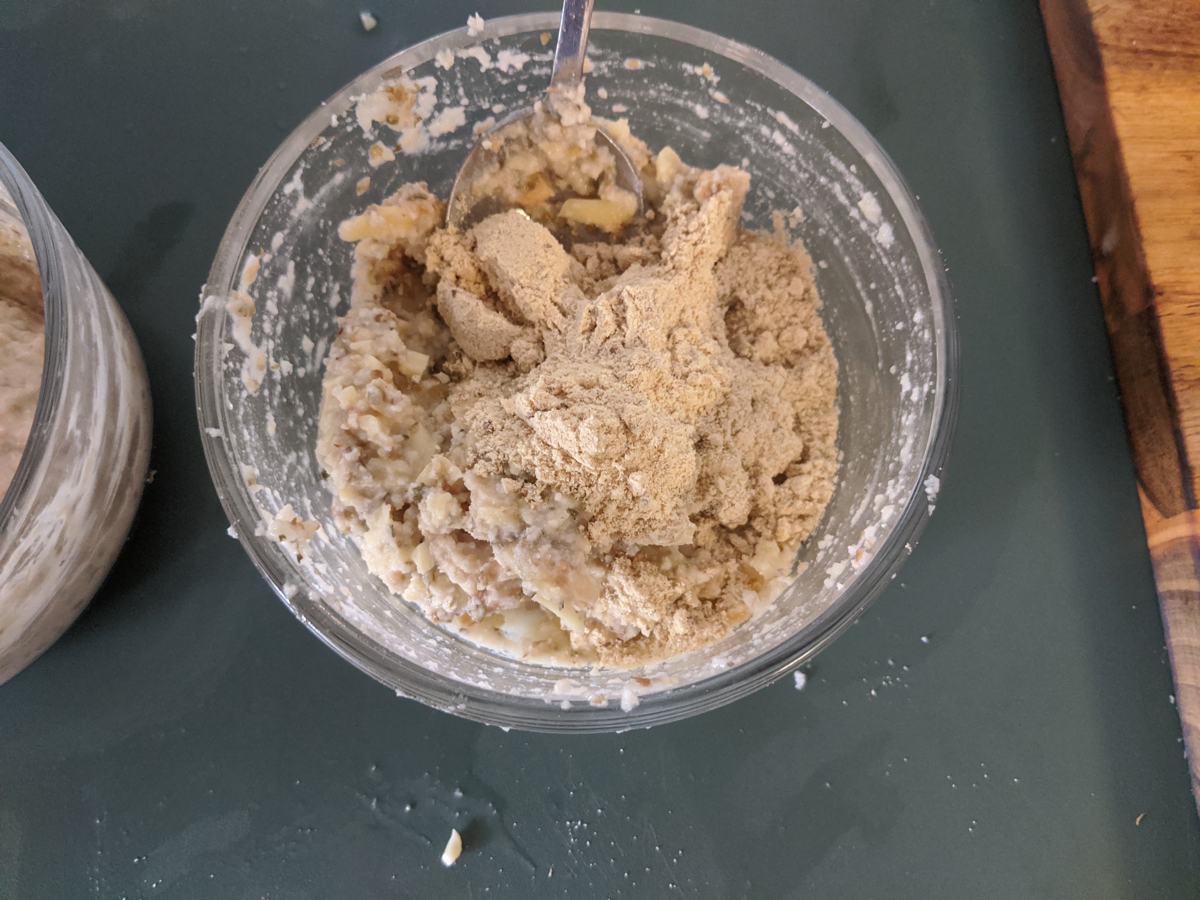 A generous teaspoon of crunchy peanut paste for alleged structural enhancement [spoilers: it failed. Use an egg]