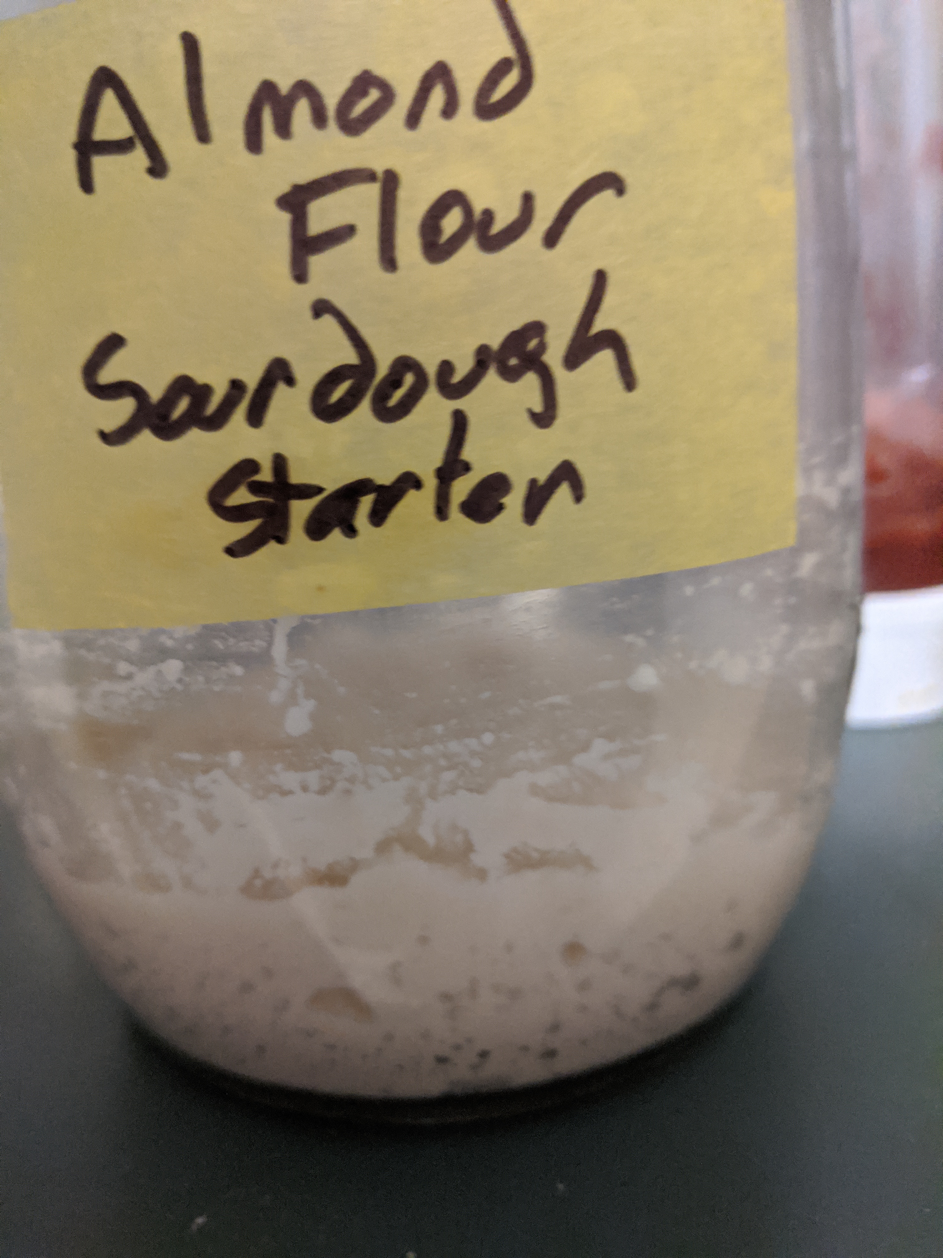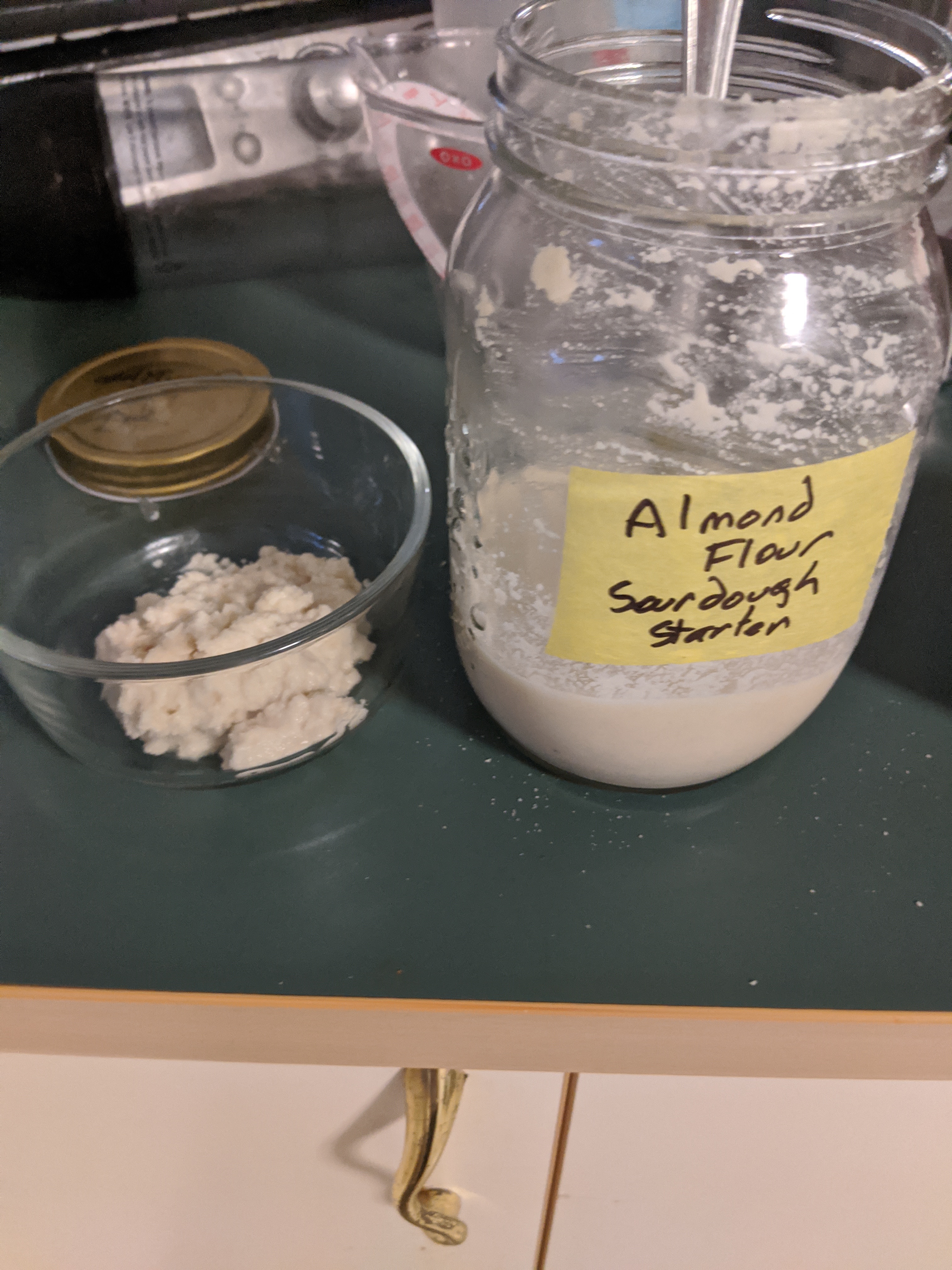 My first harvest from the almond starter looked a little bit more like scrambled eggs. Not a lot of cohesion in almond flour products.