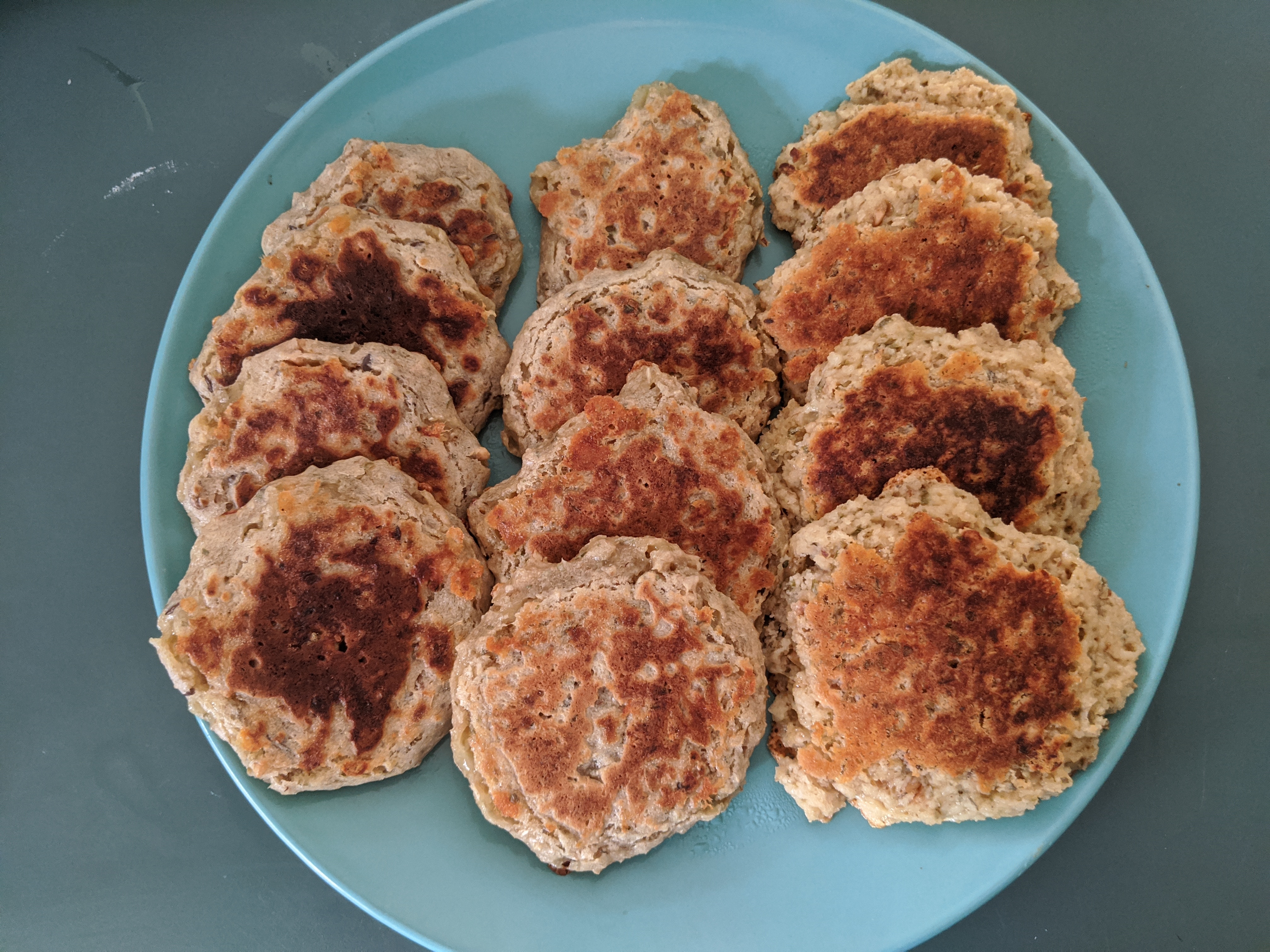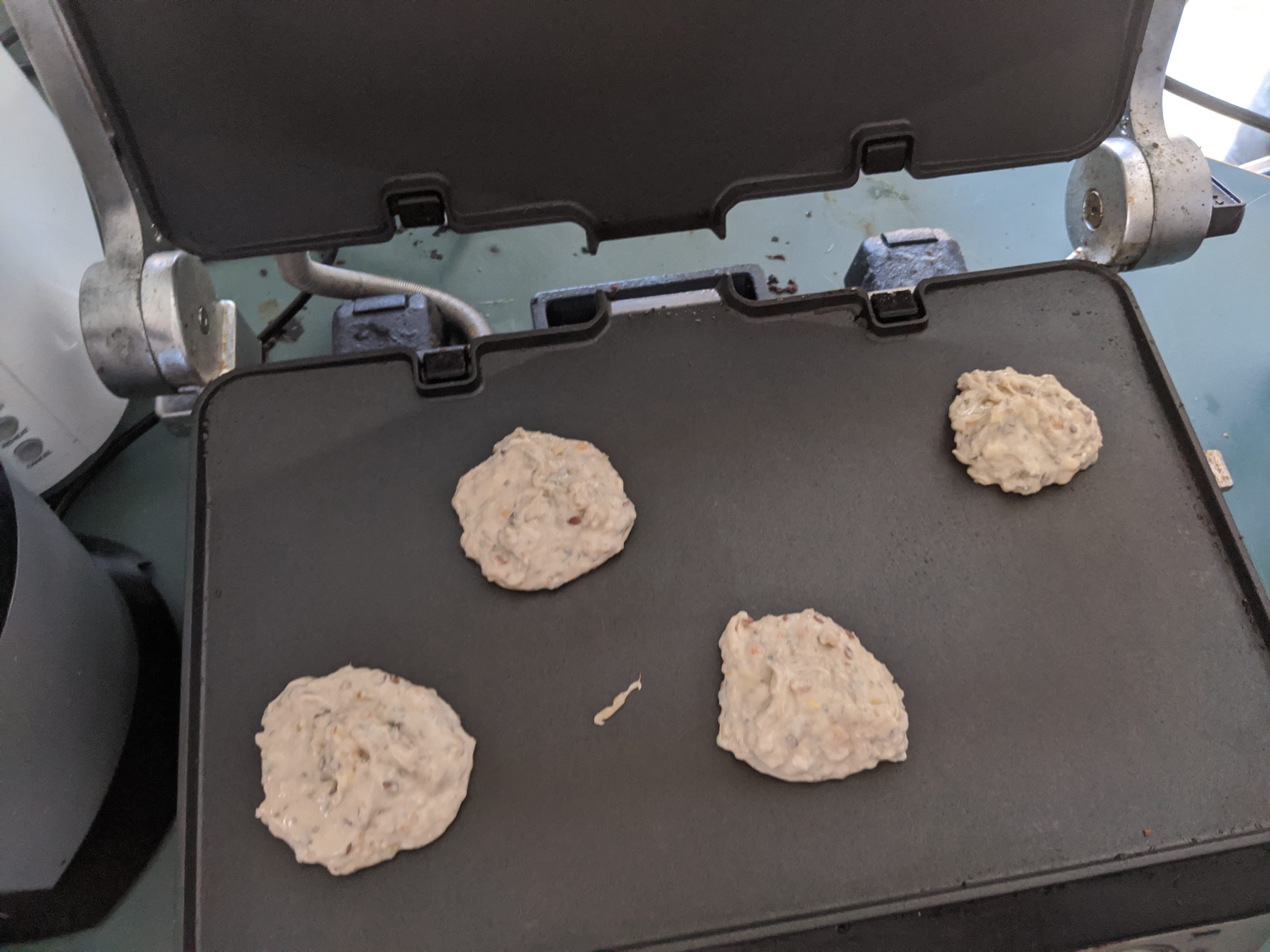 Now we're up to day four, and I have three disparate harvests to use. And a whole lotta pancakes from the day previous. Therefore I was working on Minimum Yield Starter Harvest Pancakes.