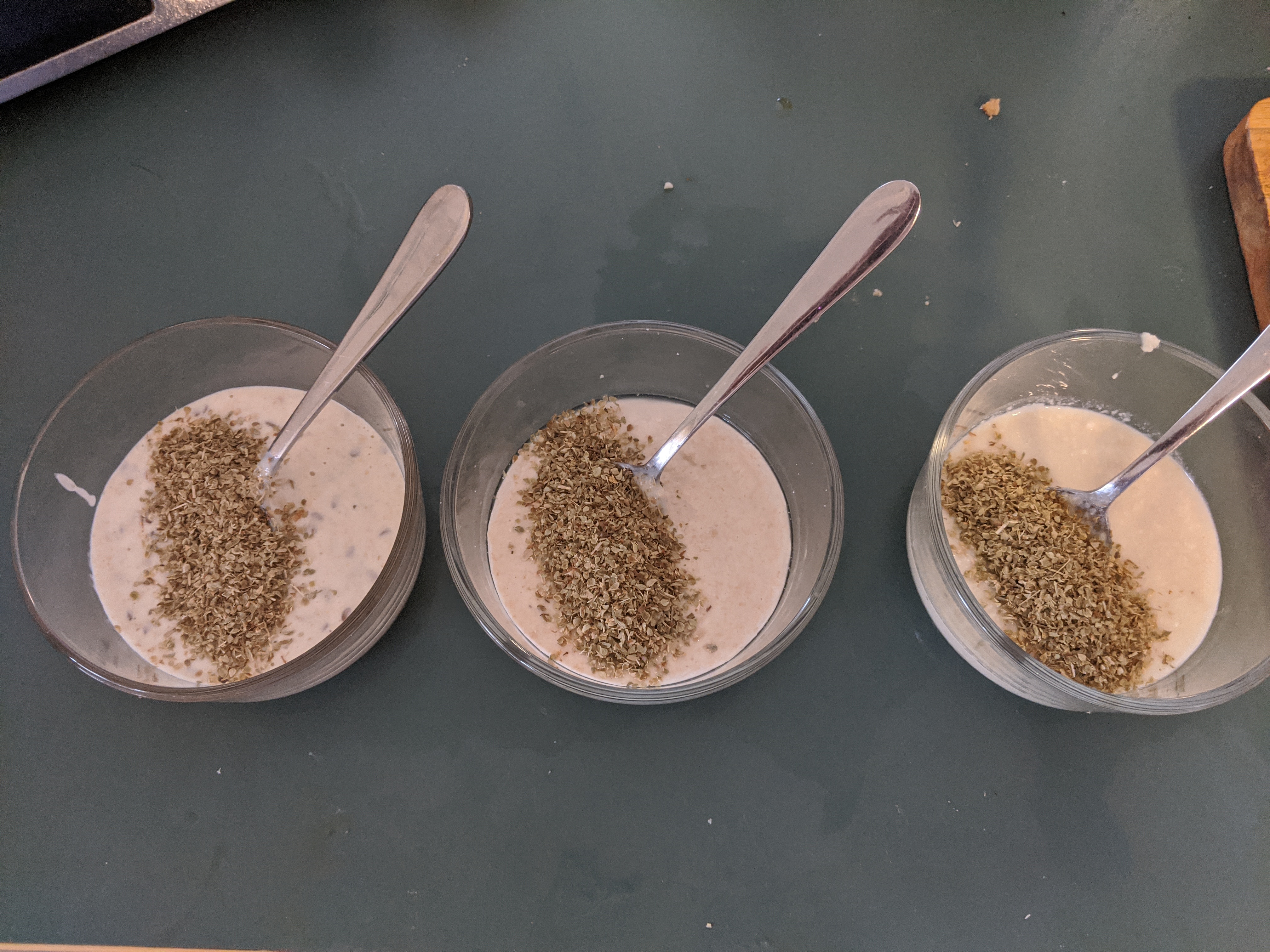 - Herbs and spices to taste, but definitely salt [As a side-note, this only enhances the smell, not the flavour. YMMV depending on how fresh the herbs/spices are and the amount you use]