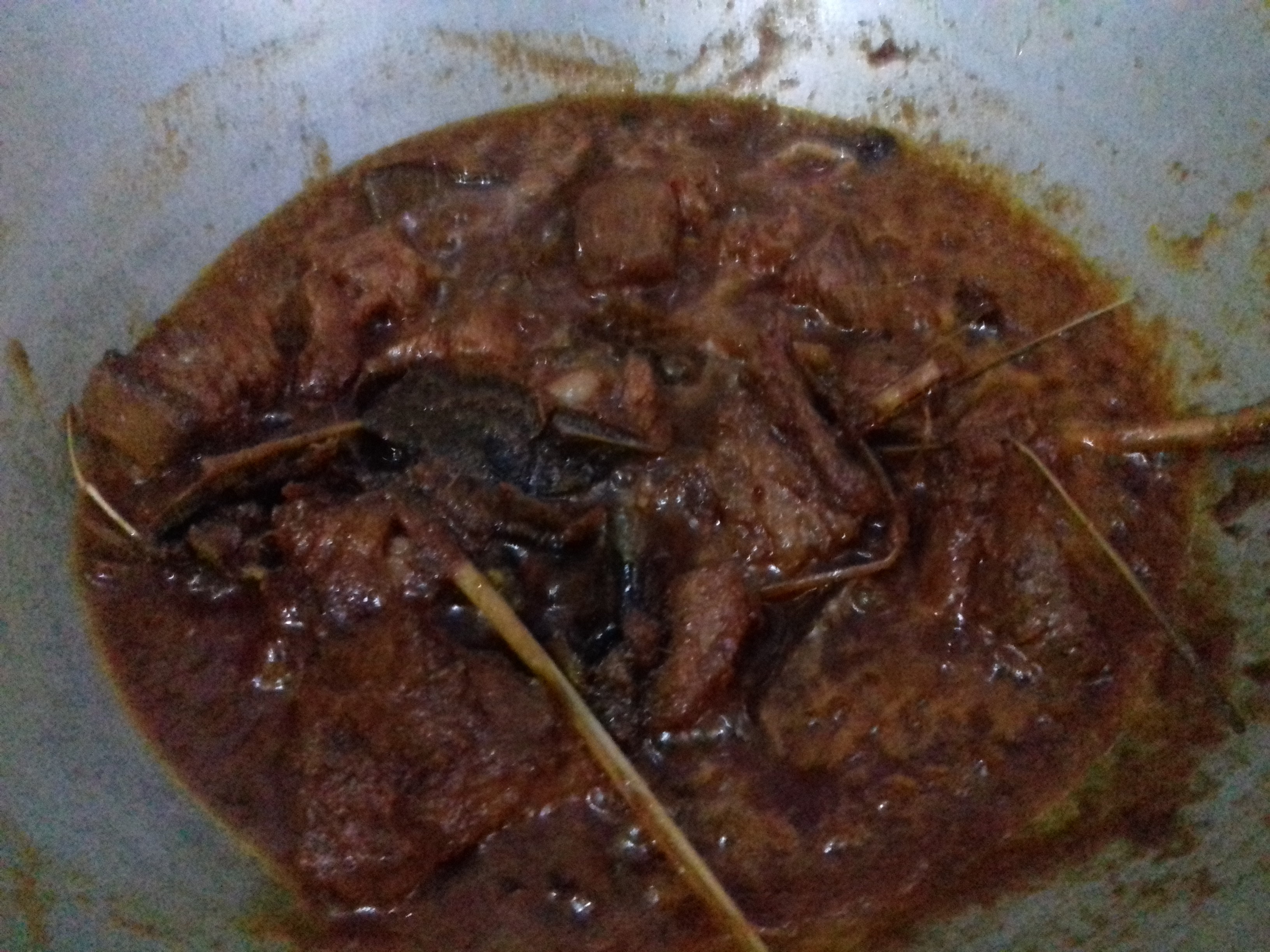 - Lanjutkan memasak dan hingga daging menjadi empuk & matang, dan mengaduk-aduk perlahan secara terus-menerus supaya bagian dasar tidak menjadi gosong oleh karena daging yang matang.