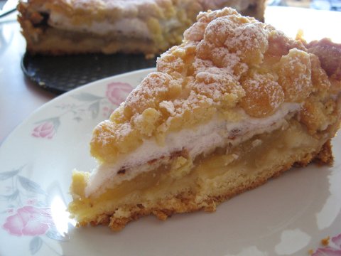 Ciasto: 2.5 szklanki mąki pszennej. 1,5 szklanki mąki ziemniaczanej , 2 jaja, szklanka cukru pudru, 25 dag masła roślinnego, pół szklanki kwaśnej śmietany,2 płaskie łyżeczki proszku do pieczenia,sok i skórka otarta z jednej cytryny lub cukier waniliowy,szczypta soli. Nadzienie: 2 kg jabłek, cynamon,cukier.Lukier:szklanka cukru pudru,sok z cytryny (można zastąpić zaprawą cytrynową ),około 3 łyżek wody.