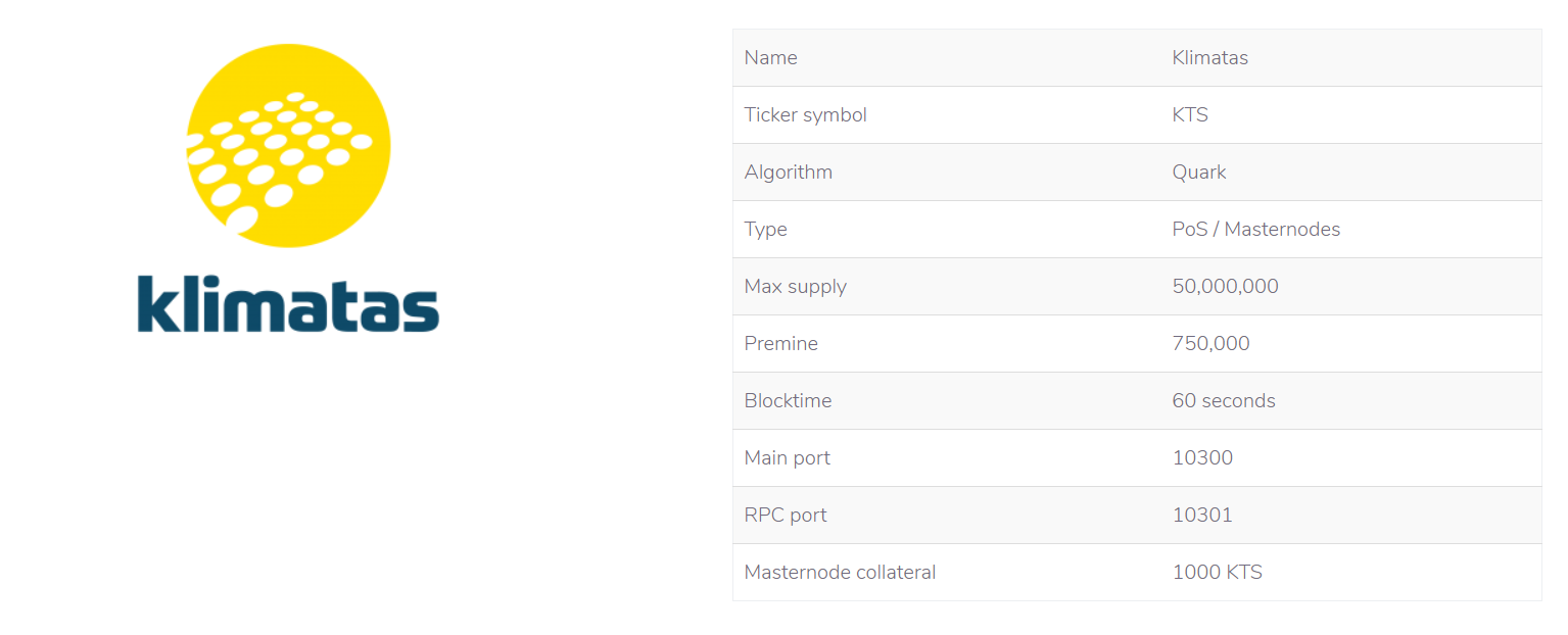 A Klimatas oferece um programa para masternodes , 1000 tokens KTS são necessários para ser um masternode da rede !