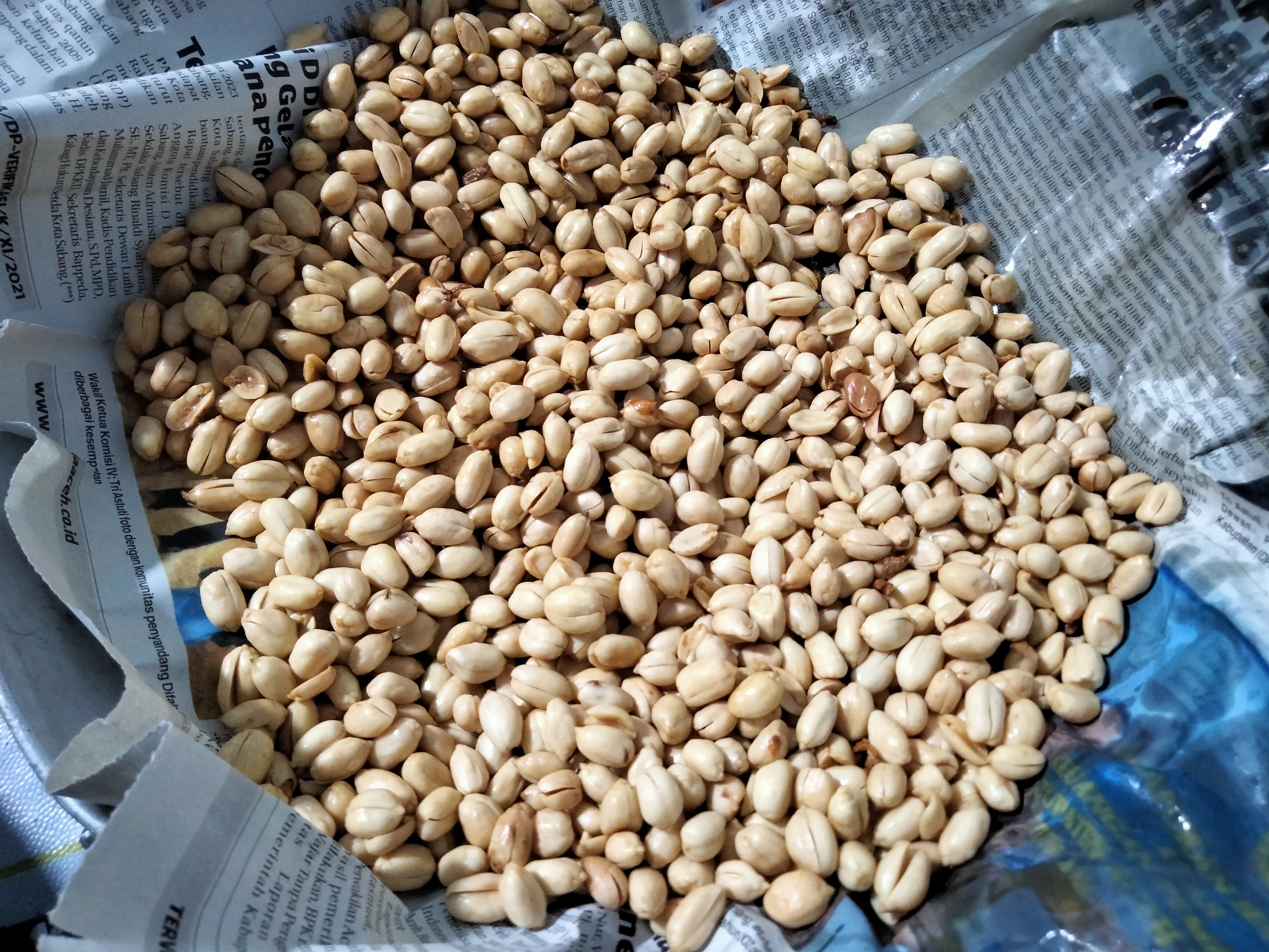 Kacang ini enaknya di goreng temanku, dan itu sangat mudah dilakukan, rendam kacang tanah dengan air mendidih dan tunggu sampai airnya dingin lalu kupas kulitnya.