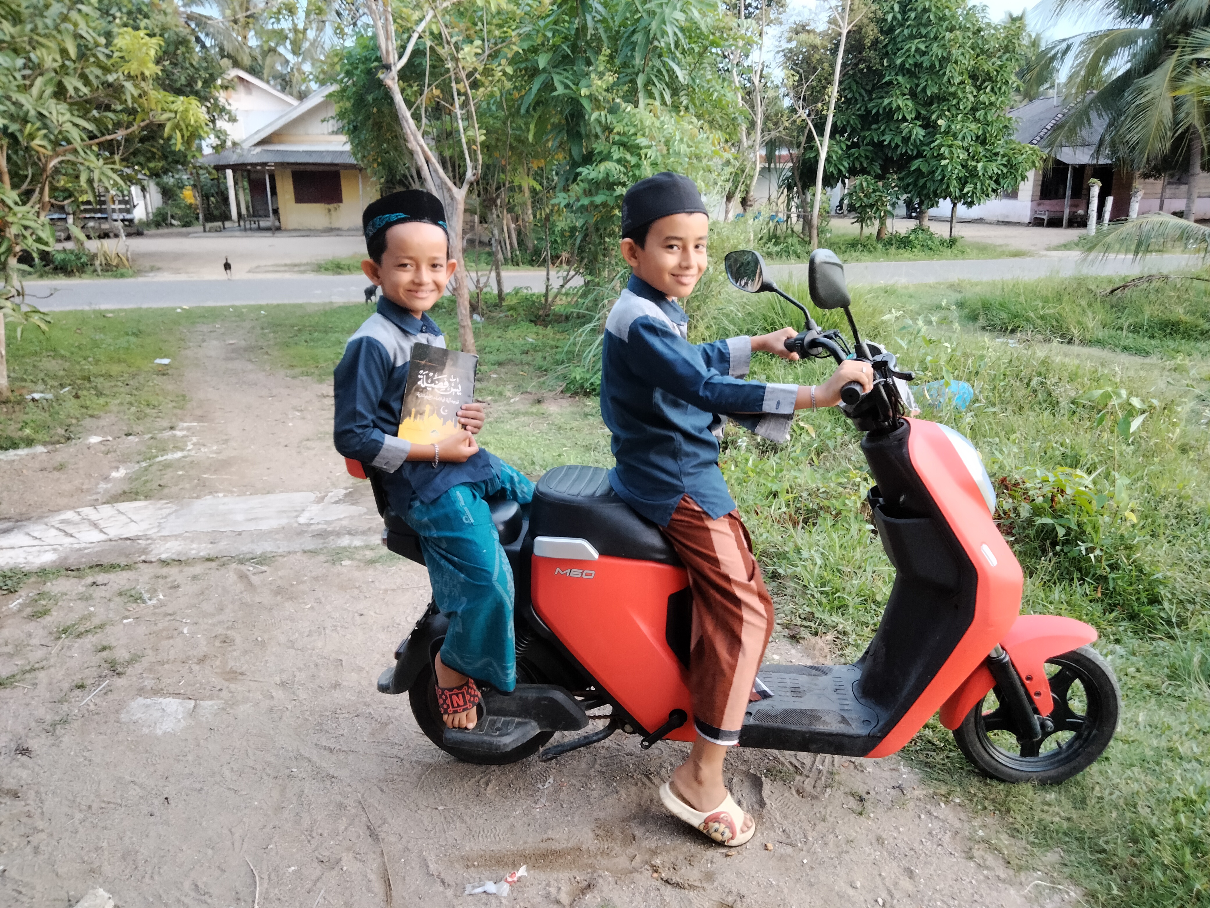 Ya...anakku pandai menyetir sepeda sehingga saya tidak perlu mengantar dan menjemput mereka pergi mengaji dan itu artinya saya bisa istirahat sejenak😅