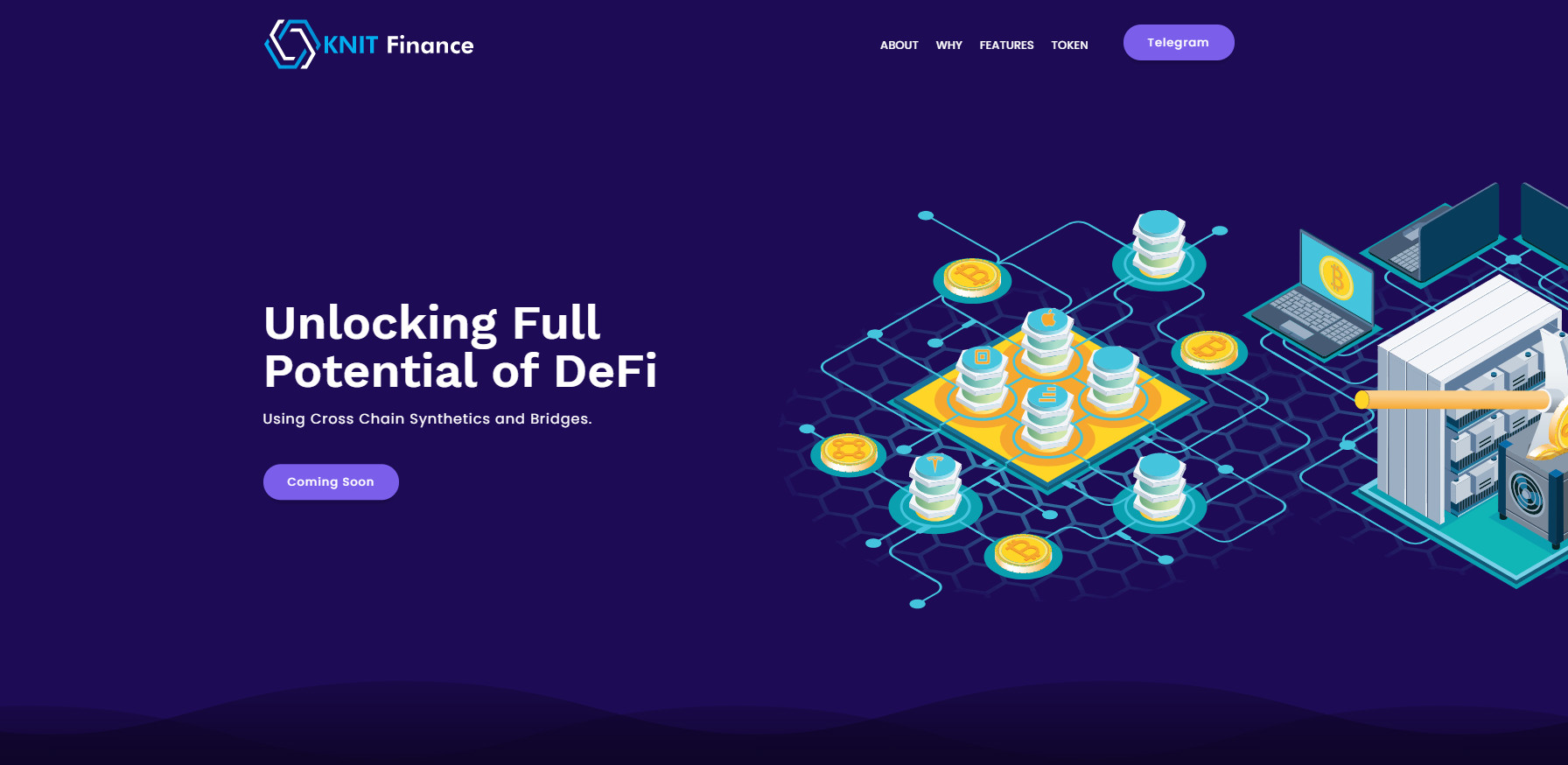 KNIT.Finance - это следующее поколение протокола DeFi, целью которого является объединение нескольких цепочек, отличных от Ethereum, с ERC20 на этапе 1. Любой цифровой блокируемый актив можно использовать с помощью KNIT.Finance путем создания эквивалентных синтетических токенов в соотношении 1: 1, следовательно, разблокировка миллиардов долларов и доступ к торговле, который может быть защищен от цензуры.