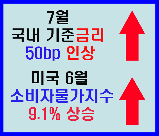 7월 국내 기준금리 빅스텝(50bp) 인상 및 미국 6월 소비자 물가 지수(CPI) 9.1% 상승 발표
