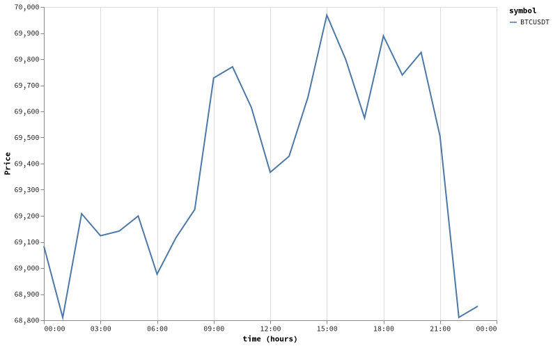 특히 09시 00분에는 69,728.00$로 급등한 후, 15시 00분에 69,968.87$로 최고점을 기록했습니다.