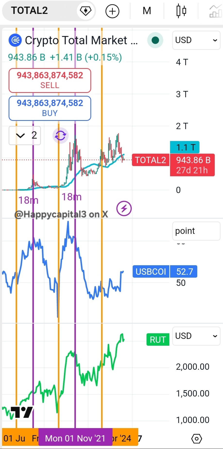 제목:I compared Crypto Total 2 Marketcap, PMI and RUSSELL 2000.
