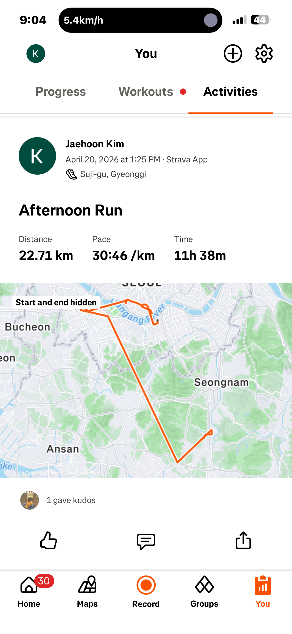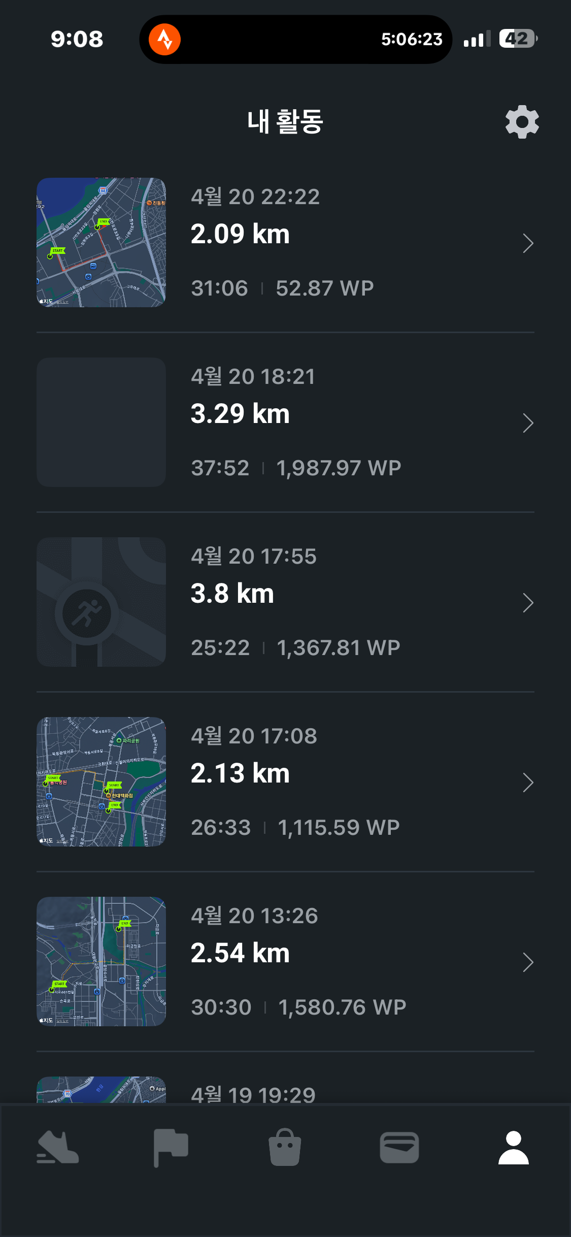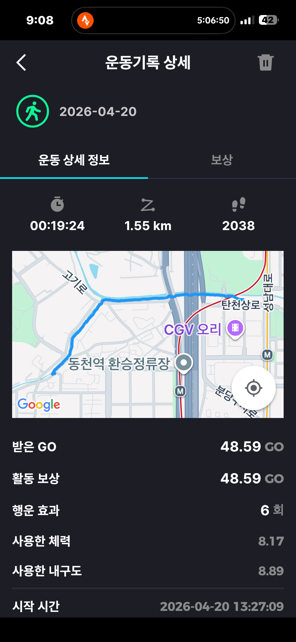 [2026년 4월 20일] 어제의 운동 22.71km걷기(목표 10km)
