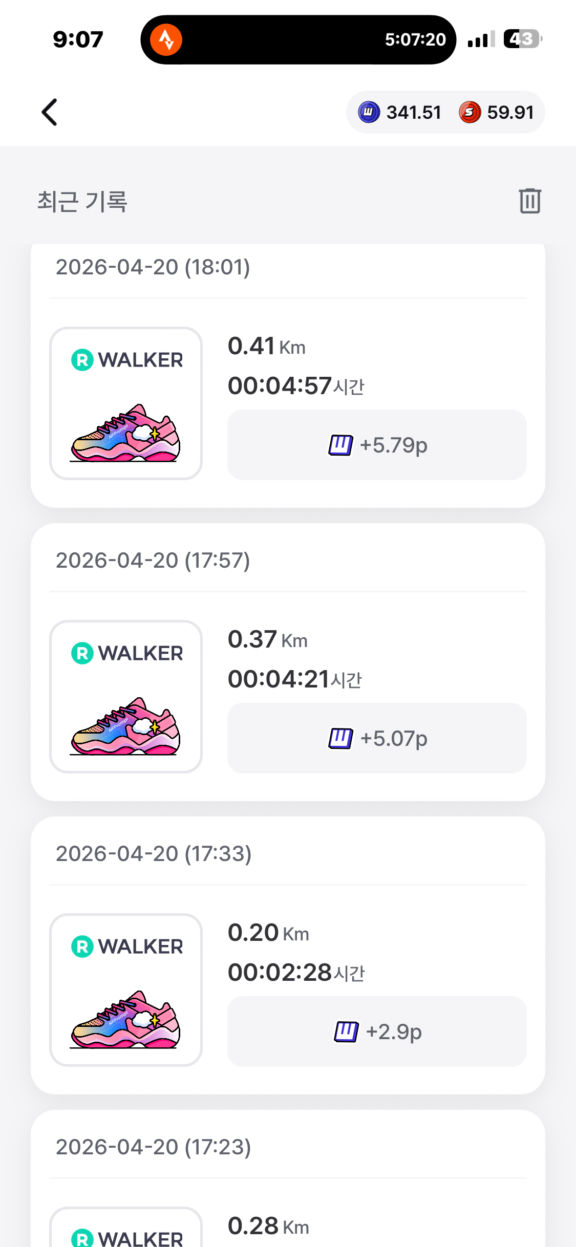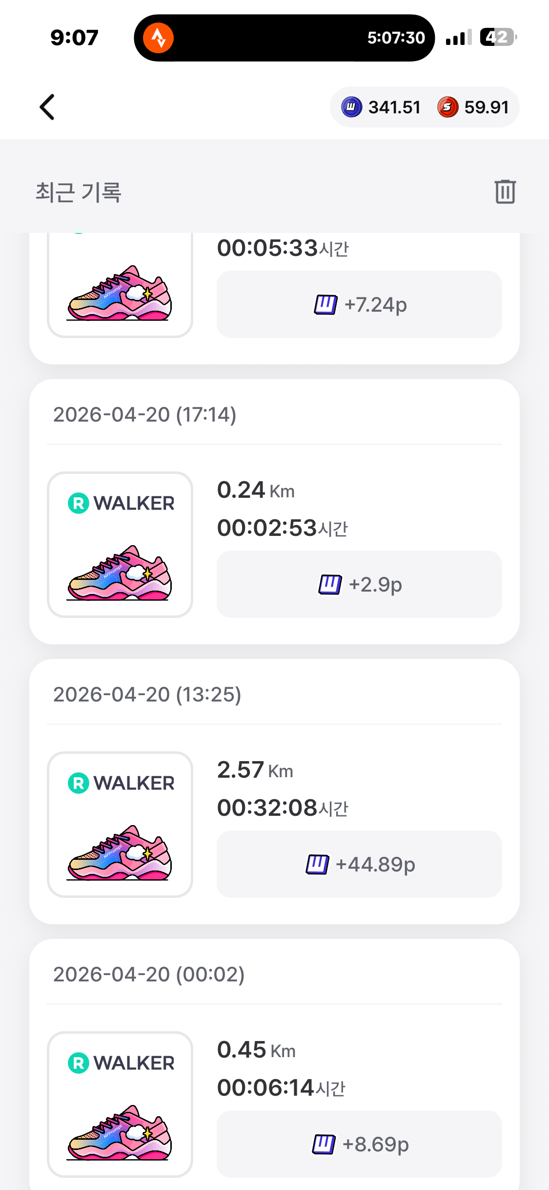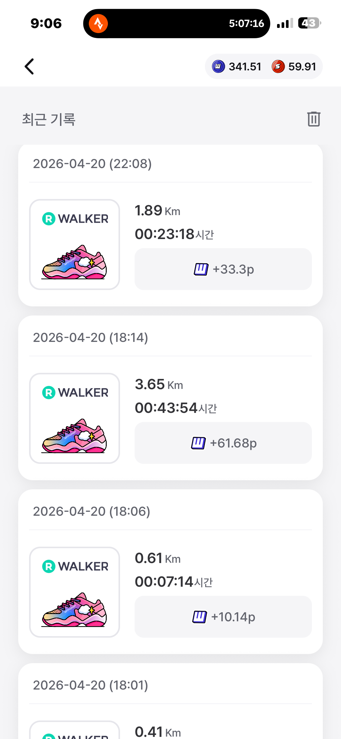 [2026년 4월 20일] 어제의 운동 22.71km걷기(목표 10km)