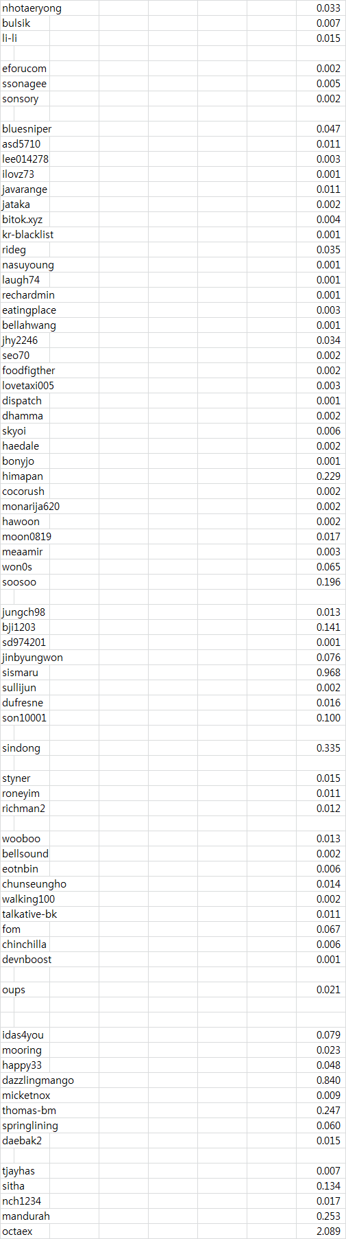 (보상이 0.001 미만이신 분은 보상이 표시되지 않습니다.)