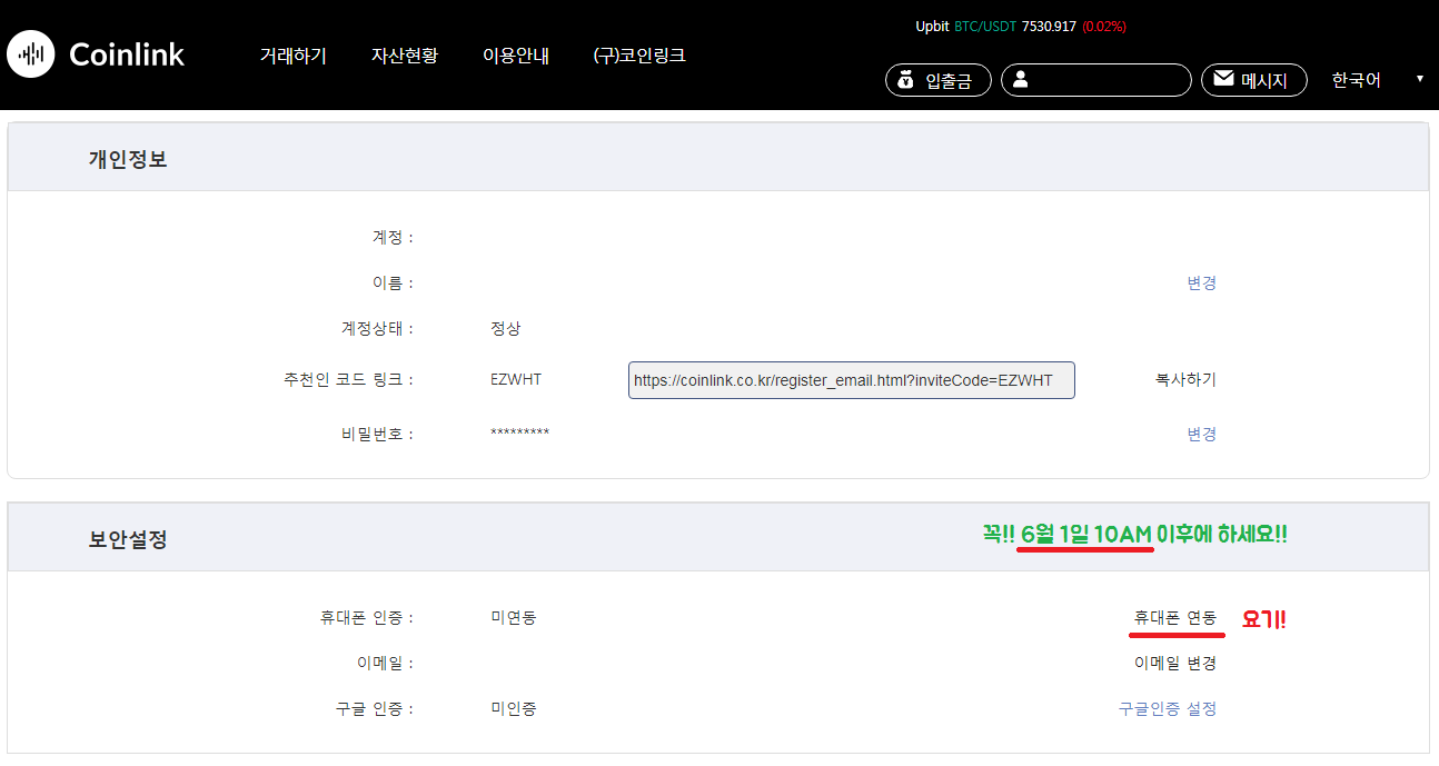 구)코인링크를 이용하셨던 고객들이면 다시 가입하신 후 모바일 인증을 하시면