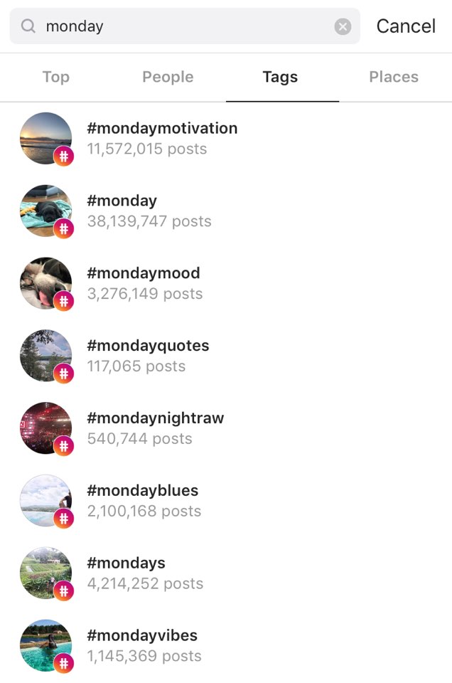 인스타그램에서도 #Mondayblues 나 이를 이겨내기 위한 #MondayMotivation (라임 굿) 등의 해시태그가 많이 사용되고 있습니다.
