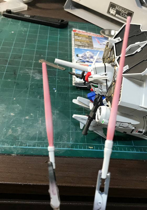 대형 빔샤벨을 장착하는 건 가능하지만, 원작이나 hg 프라모델처럼 휘두르는 것은 불가능하네요...