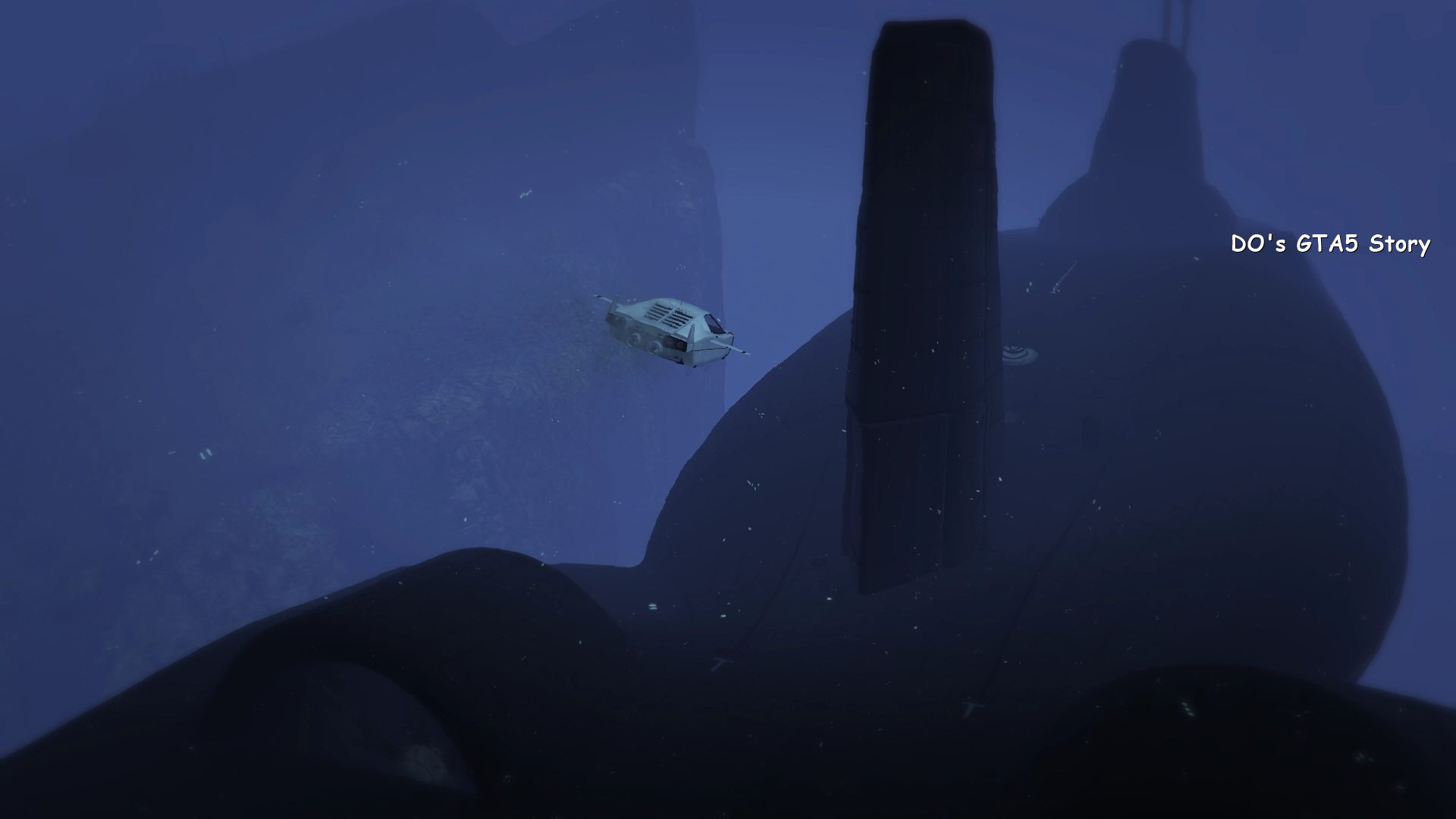 바닷속에 거대한 잠수함이 버티고 있습니다.