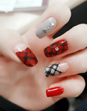 [Red & Gray 딥 프렌치 네일]