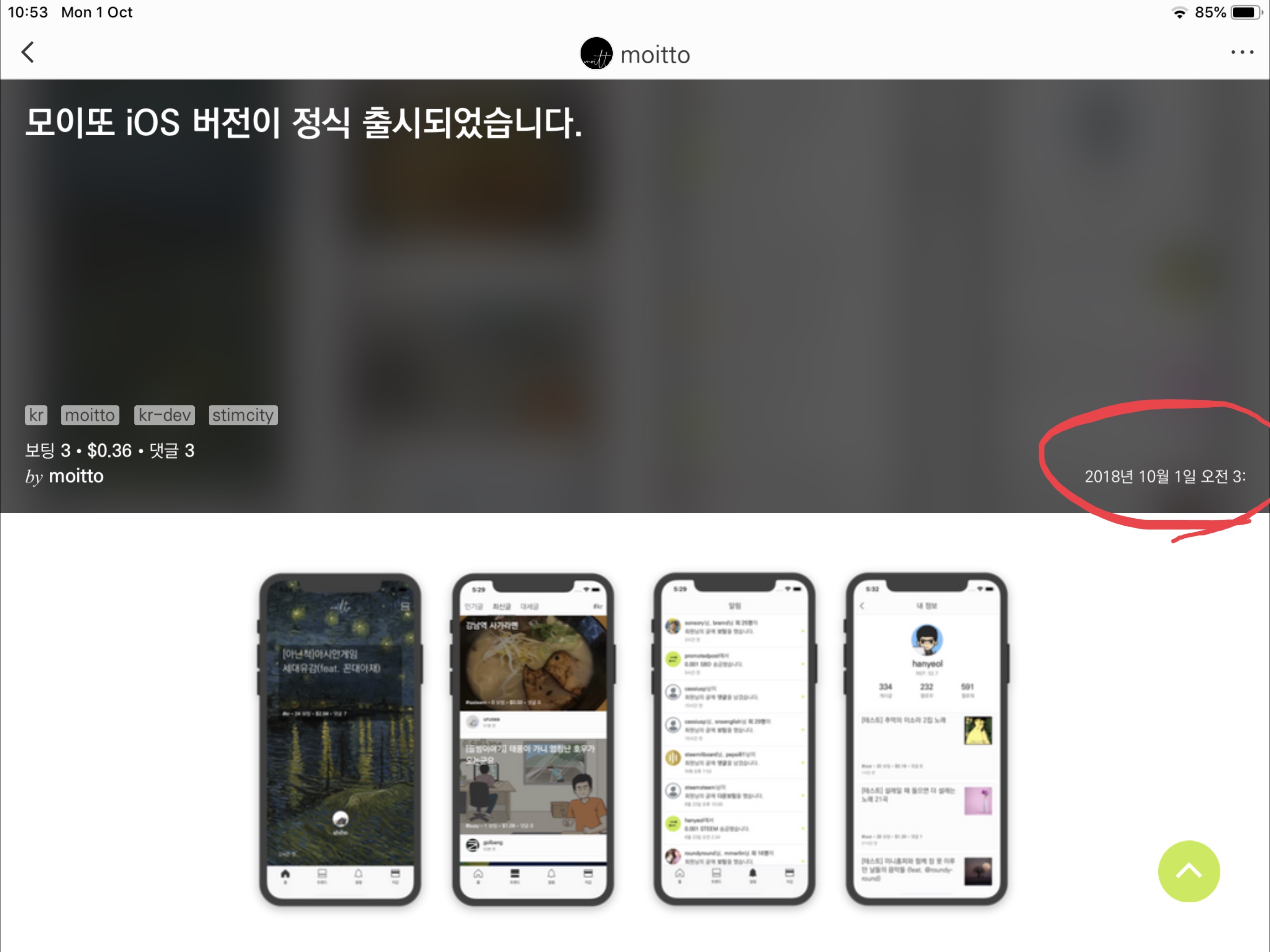 You are viewing a single comment's thread from:RE: 모이또 iOS 버전이 정식 출시되었습니다.View the full contextjisoooh0202 (58)in #kr • 8 years ago 일단 두가지 피드백 드릴게 바로 있네요....ㅎㅎ 피드에서는 잘 보이는데 위에 두군데 시간이 표시가 안되네요 그리고 댓글쓸때 사진업로드를 못해서 (아이폰은 되는지 모르겠네요...ㅋ) 현재 스팀잇에서 피드백 드리고 있습니다. ㅋ
