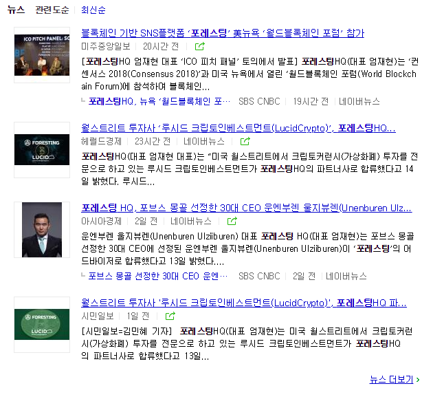 트론은 간략하게 사진하나로 보고 다음 볼 블럭체인은 포레스팅 입니다.