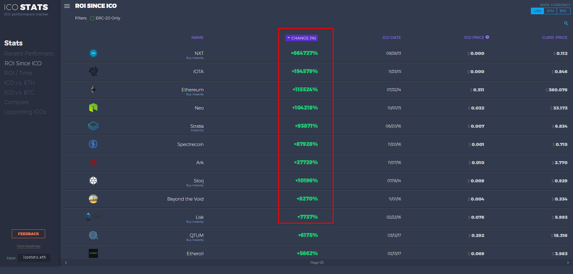 결국 ICO 대비 수익률 사상 최대라는 성과를 투자자에게 줍니다.