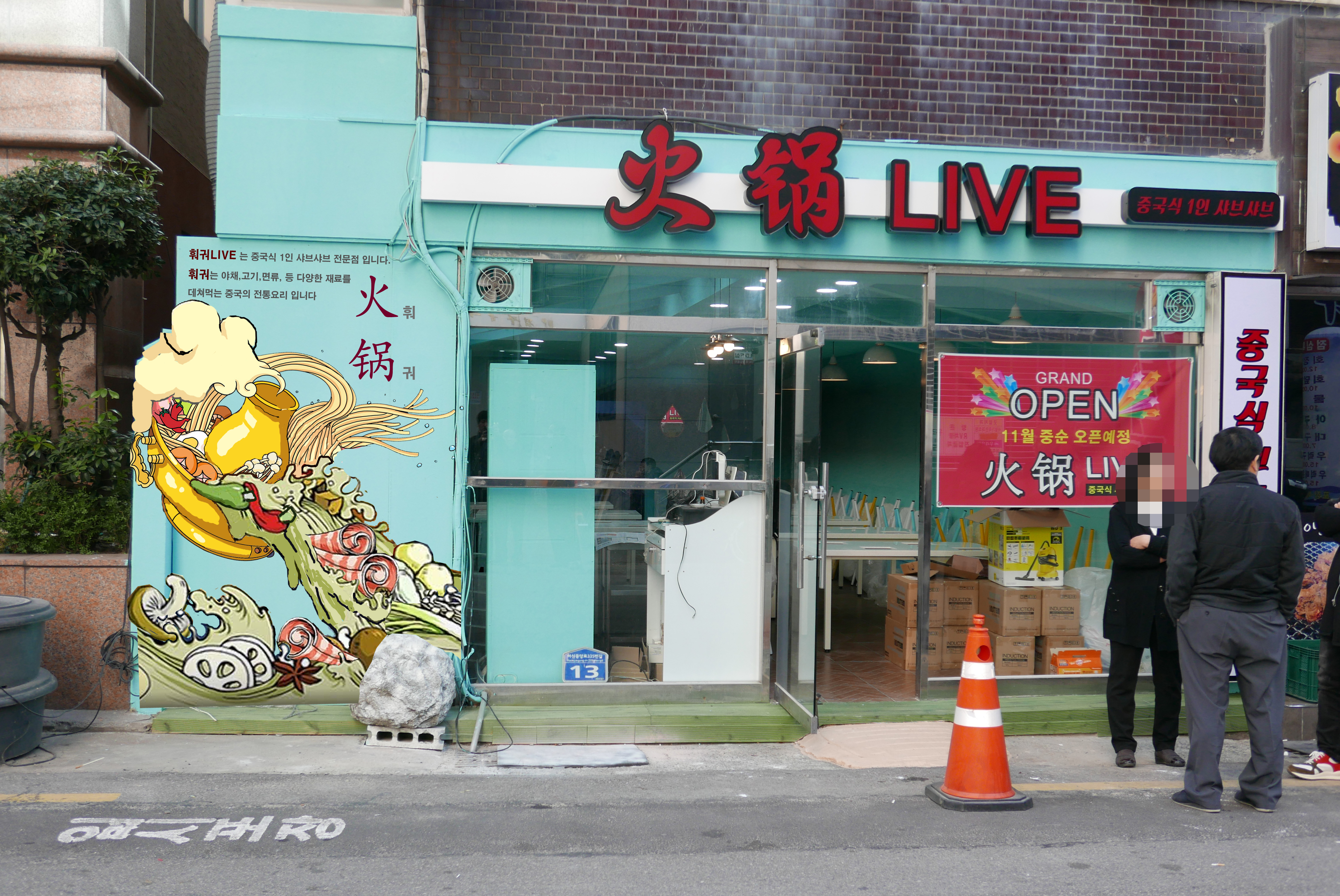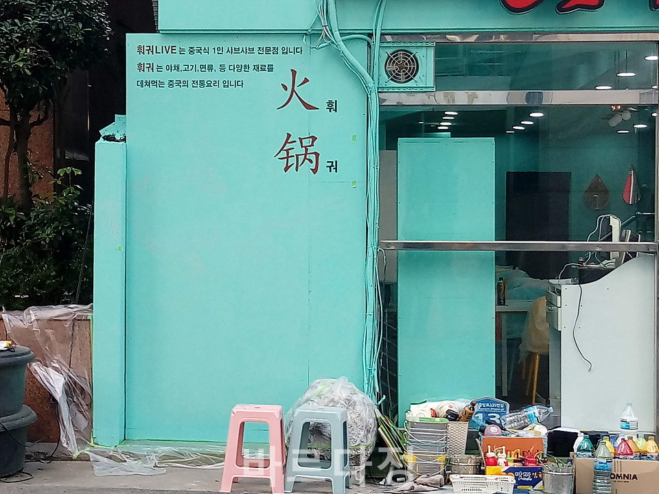 부산 하단초등학교 근처에 위치한 중국식 샤브샤브집 '훠궈LIVE' 에 작업을 하였습니다.