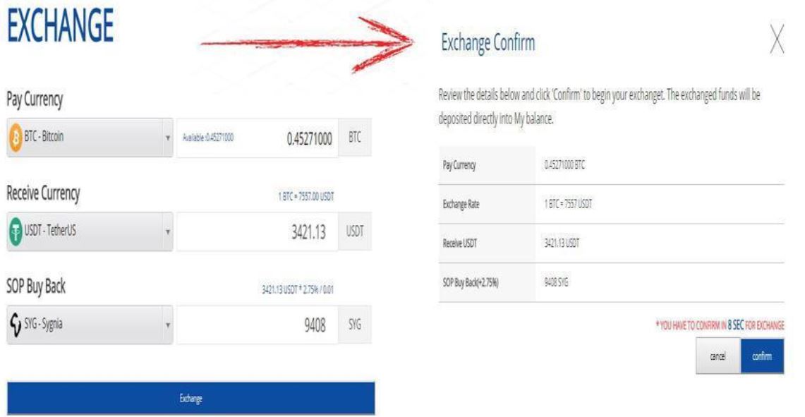 저는 바로 SYG를 USDT로 전환하여 출금하였습니다