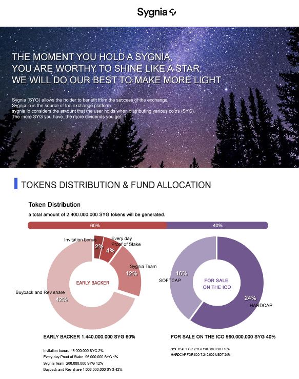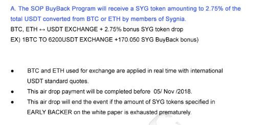 시그니아가 충분한 코인을 보유할려면 시장경제에 많은 제약이 생기게됩니다. 그래서 획기적인 방법으로 사전유저를 모으면서 거래소 코인인 SYG 를 (SOP BUY BACK)으로 프라이빗세일을 진행하고있었습니다.