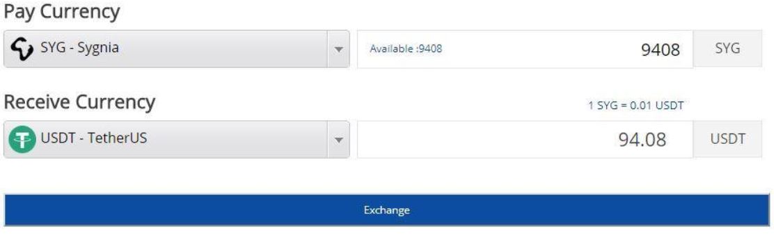 지급받은 SYG를 바로 USDT로 전환도가능하네요