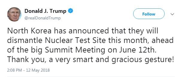 newssabrina.bilal (36)in #kr • 8 years ago 북한은 5 월 23 일부터 25 일까지 5 개국 (한국, 중국, 미국, 러시아, 영국) 출신의 기자 5 명에게 5 월 23 일에서 25 일까지 열리는 실험용 핵 시설 해체 기념 행사를 허용하고, 트럼프는 지도자와의 만남을 준비중인 대규모 현장을 해체하겠다는 북한의 발표를 환영한다. #kr-pen #kr-life #kr-writing #jjangjjangman