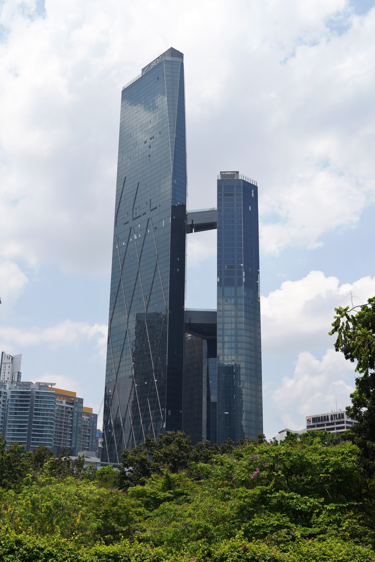 스테인리스 스틸과 유리로 덮여 있어 낮에는 햇빛에 반짝이고, 밤에는 은하수처럼 화려한 야경을 선사한다. 41층과 42층 사이(170m 높이)에는 두 타워를 연결하는 스카이브릿지가 있다.