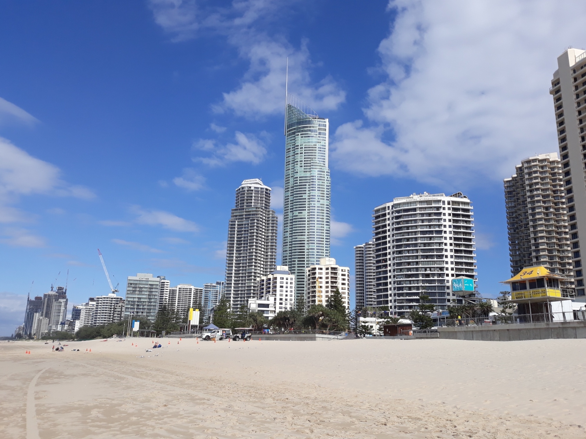 골드코스트는 브리즈번에서 차로 한시간 반 정도 거리에 있습니다. 세계에서 가장 긴 해변으로 유명하죠. 그 중에서도 중심지는 서퍼스 파라다이스라는 해변으로, 이름 그대로 서핑하는 사람들이 즐겨 찾을 뿐 아니라 누구나 좋아하는 곳입니다.