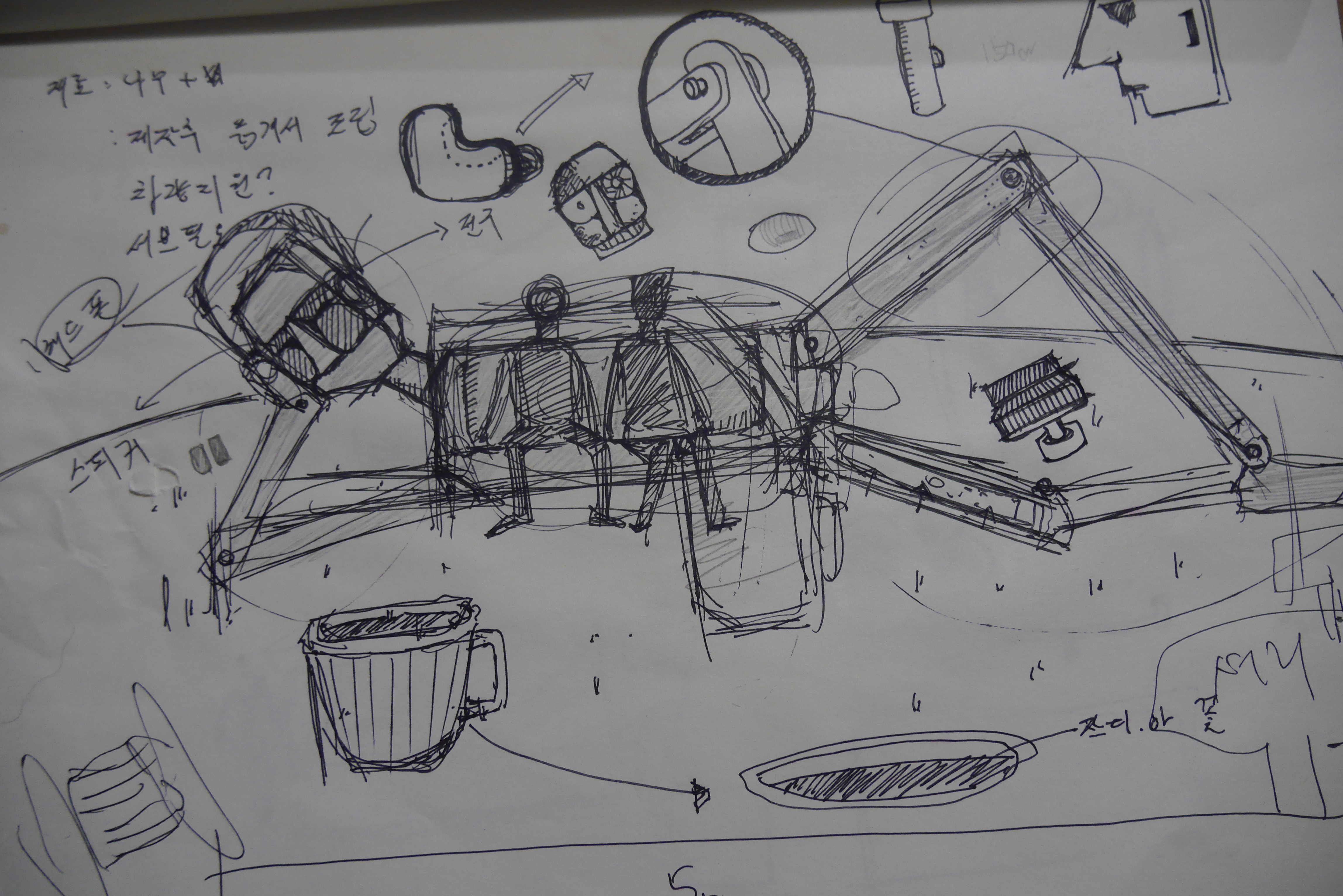 ‘휴식 그리고 커피’라는 간판과 턱 궤고 누운 목재인간(?)이랑