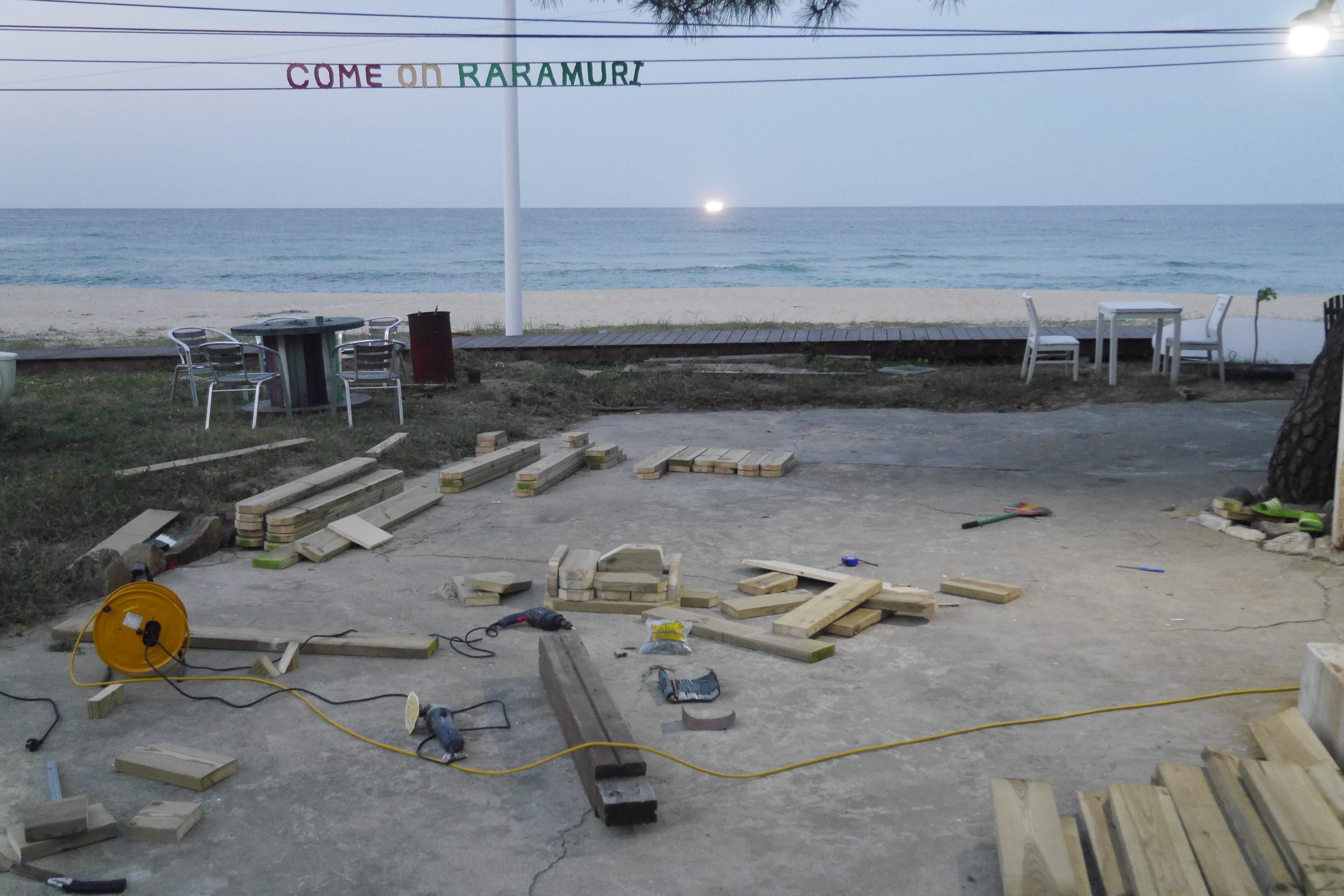 작업실이 없는 관계로 마당에 판을 깔 수 밖에 없는 나로서는