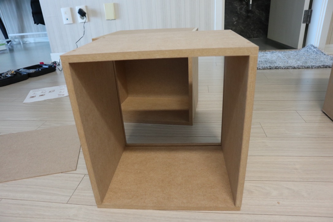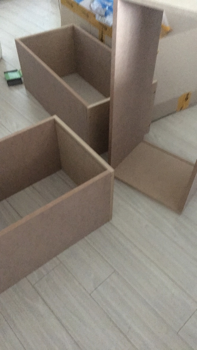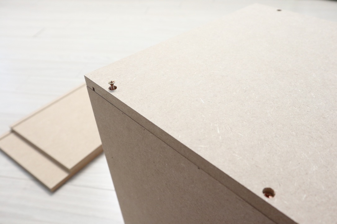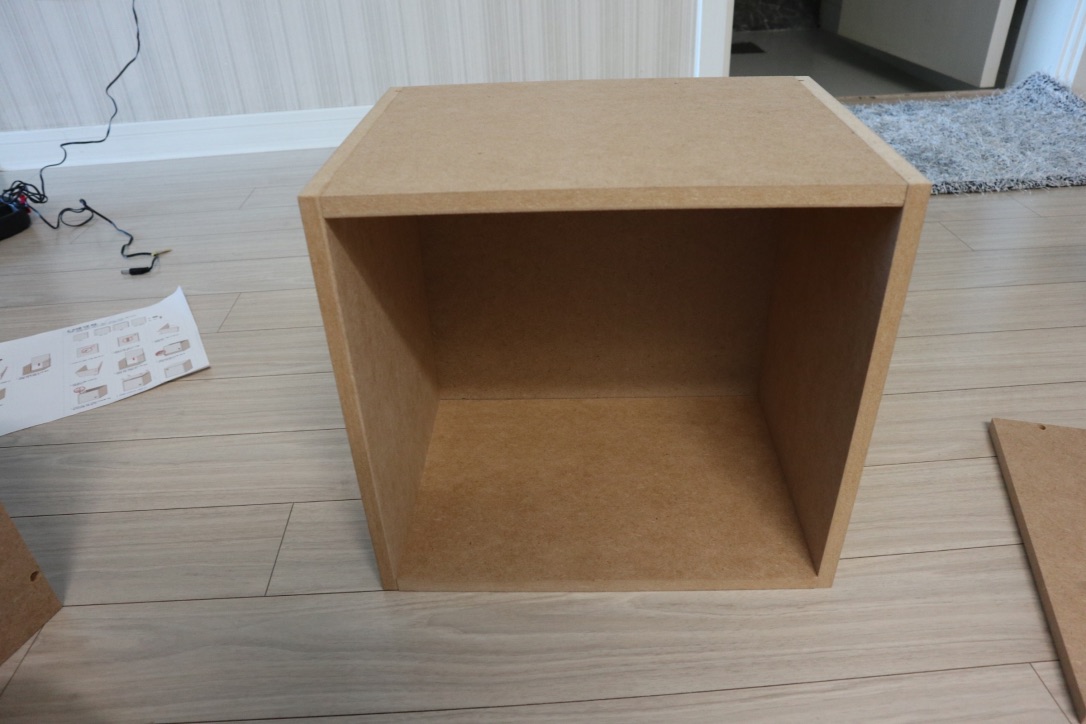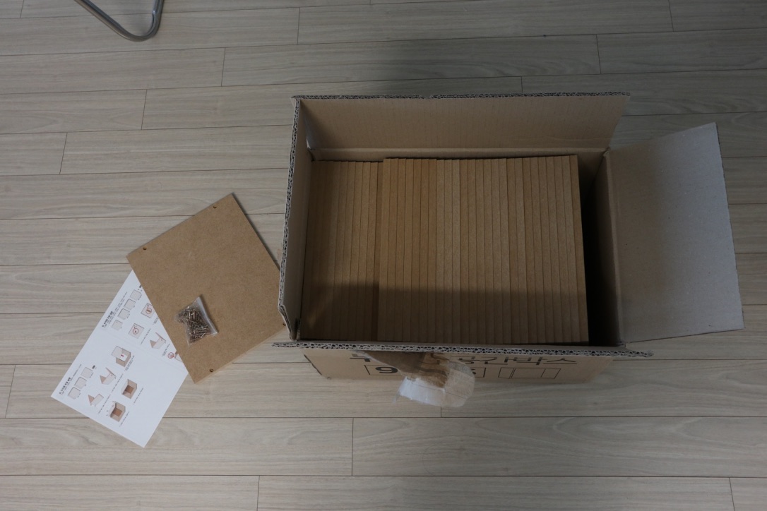 기본 구성이에요. 상판,하판, 옆판 2개, 뒷판 1개가 필요해요. 상하판은 나사박기 쉬우라고 타공이 되어있어요.