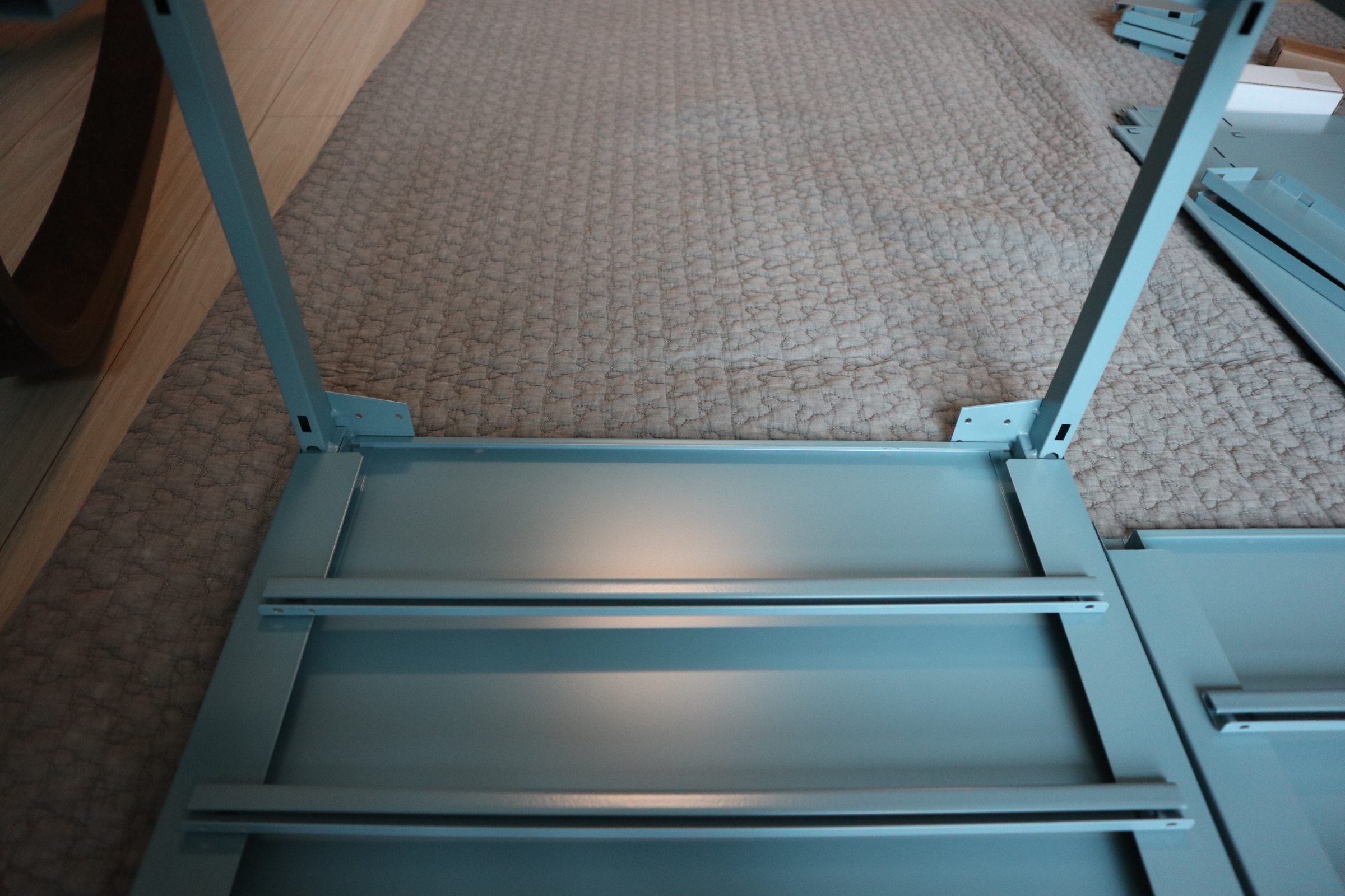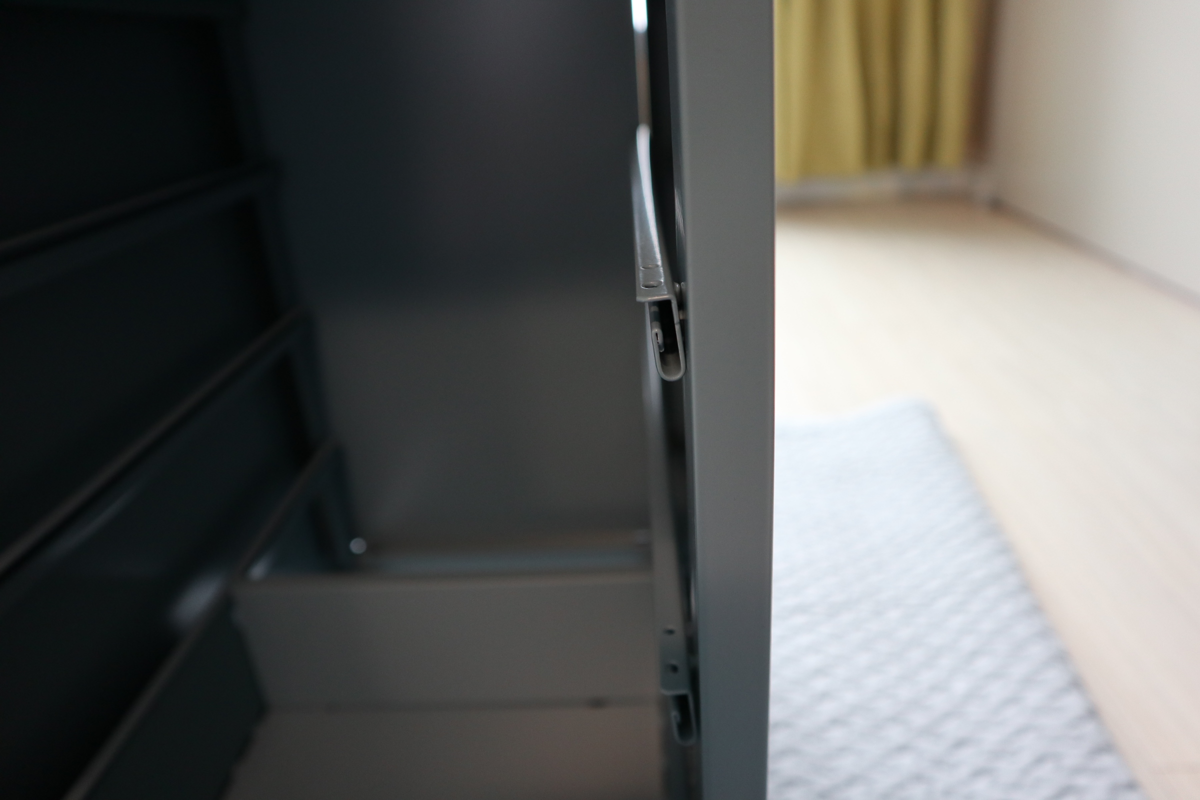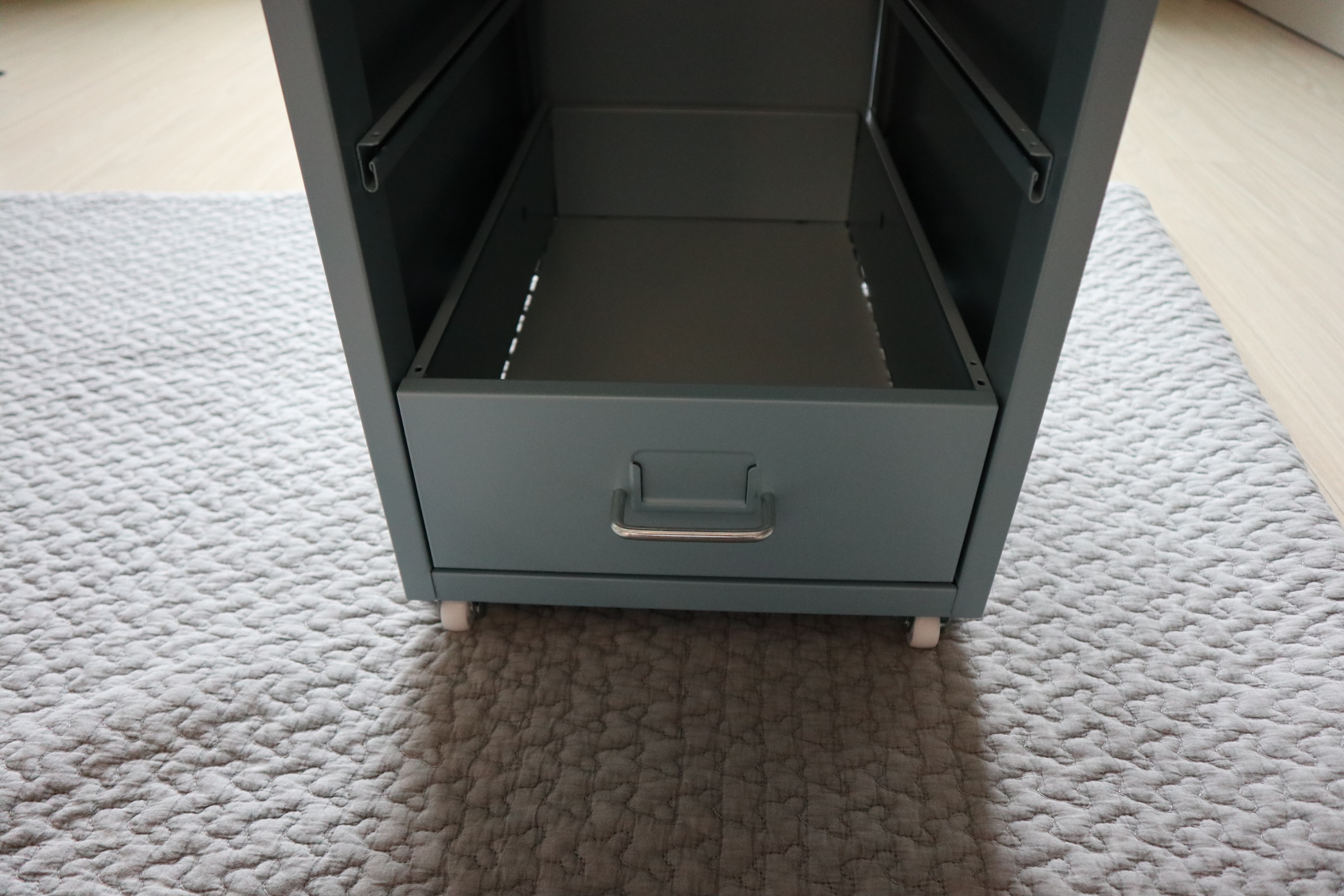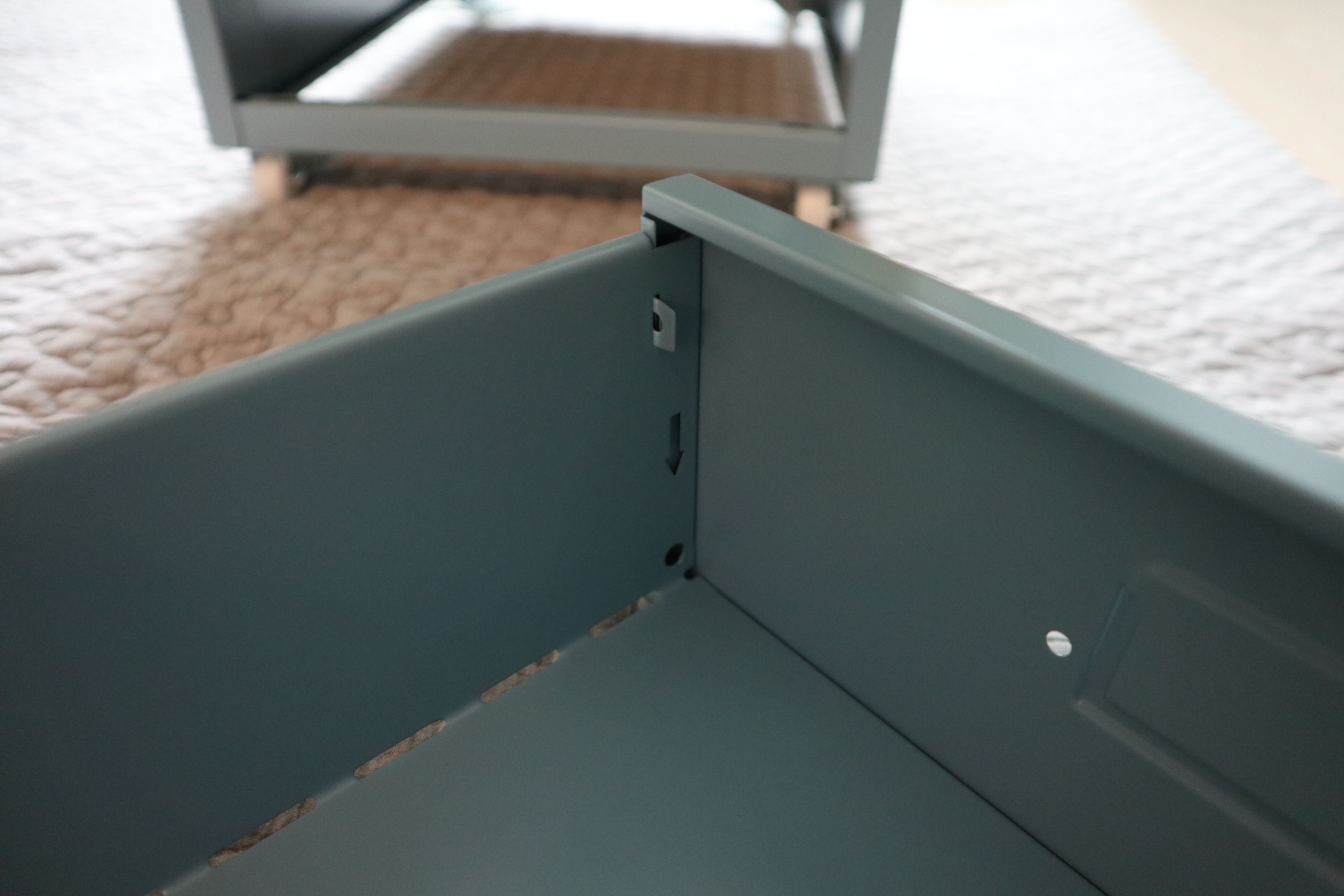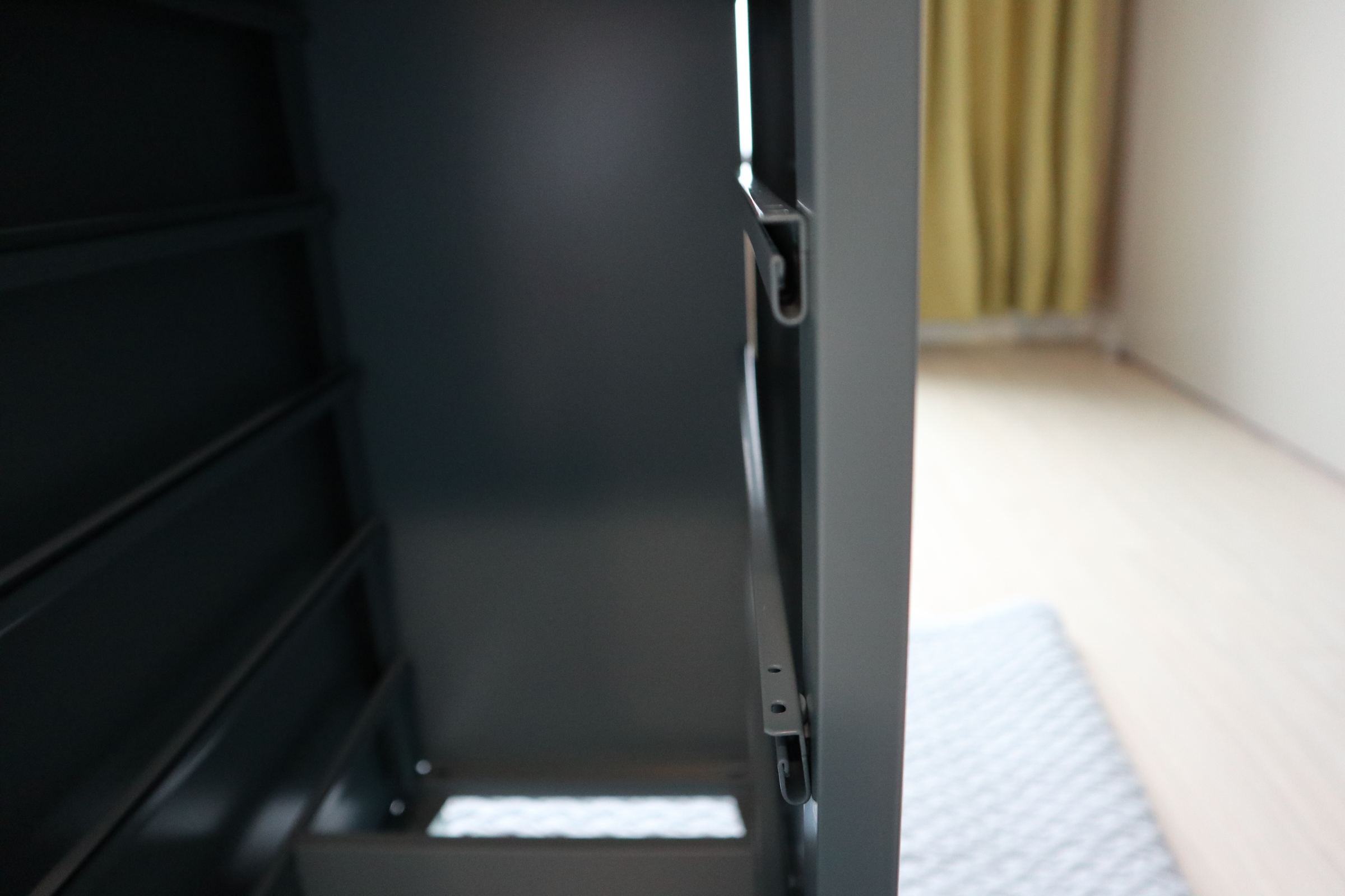 철 재질이라 바닥에 매트 까시는것을 추천드려요. 부딪히면 소음이 은근 큽니다.