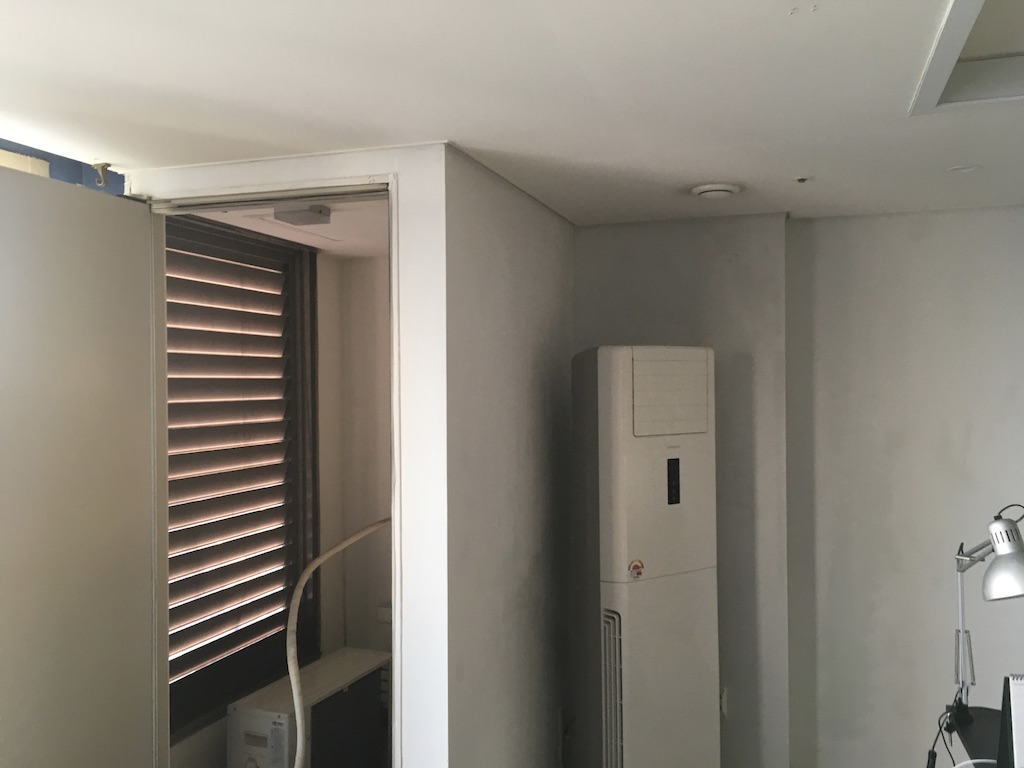 흰색이라 그런지 잘 티가 안납니다. 벽지의 누런색이 페인트를 뚫을려고 합니다.