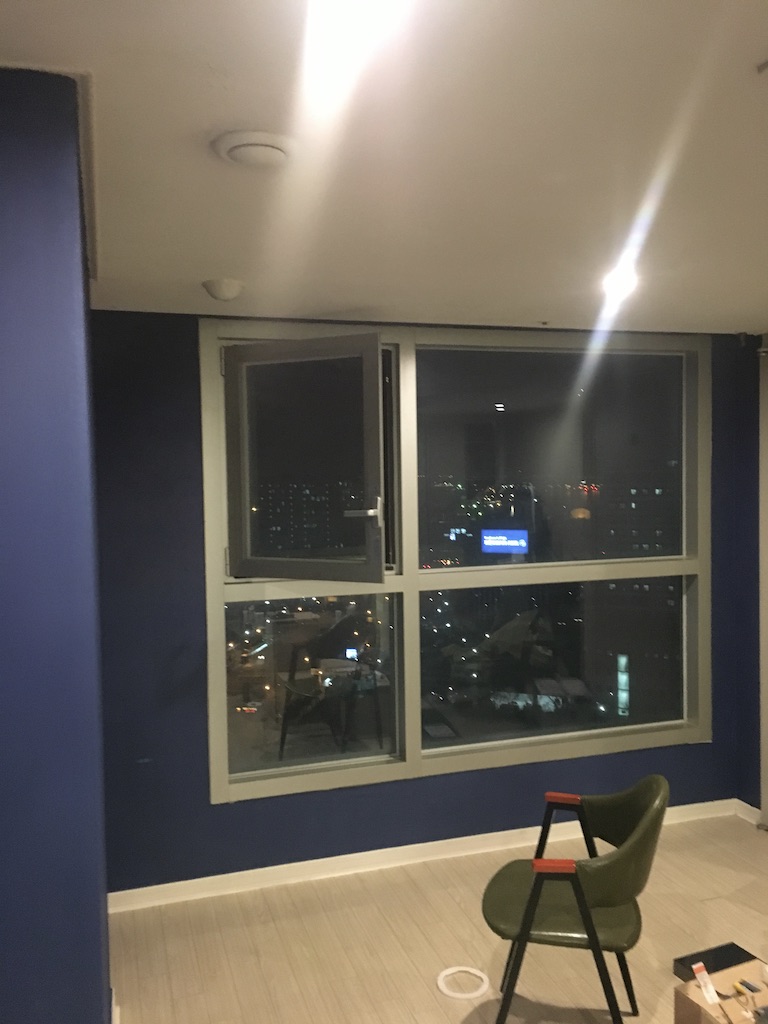 그렇게 5시간동안 요 두 벽면 칠했습니다. 2차 도장까지 끝낼수 있었어요.