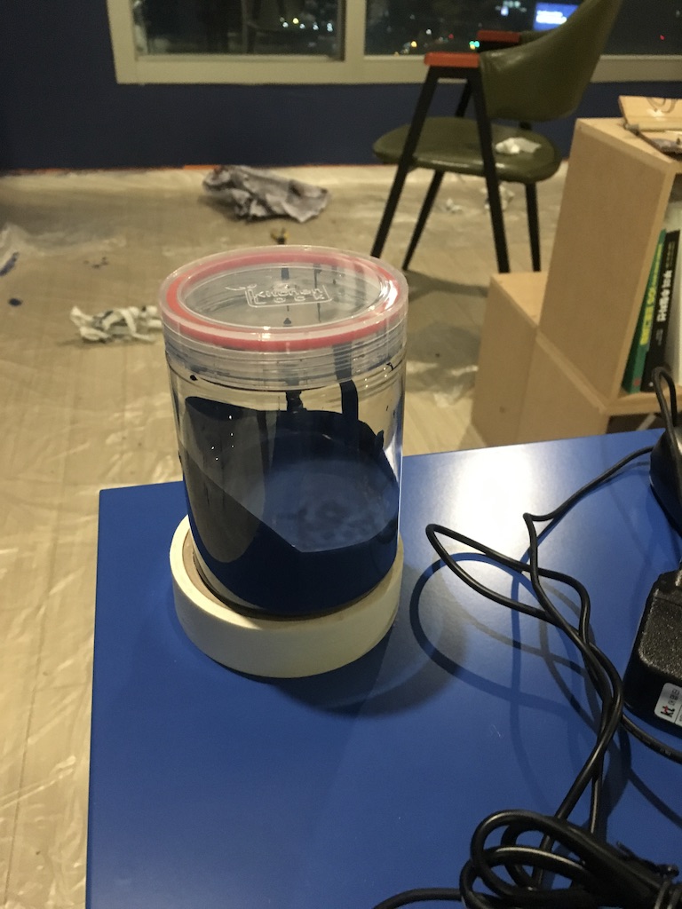 통에다 물 조금 섞고 붓으로 칠해줬습니다.