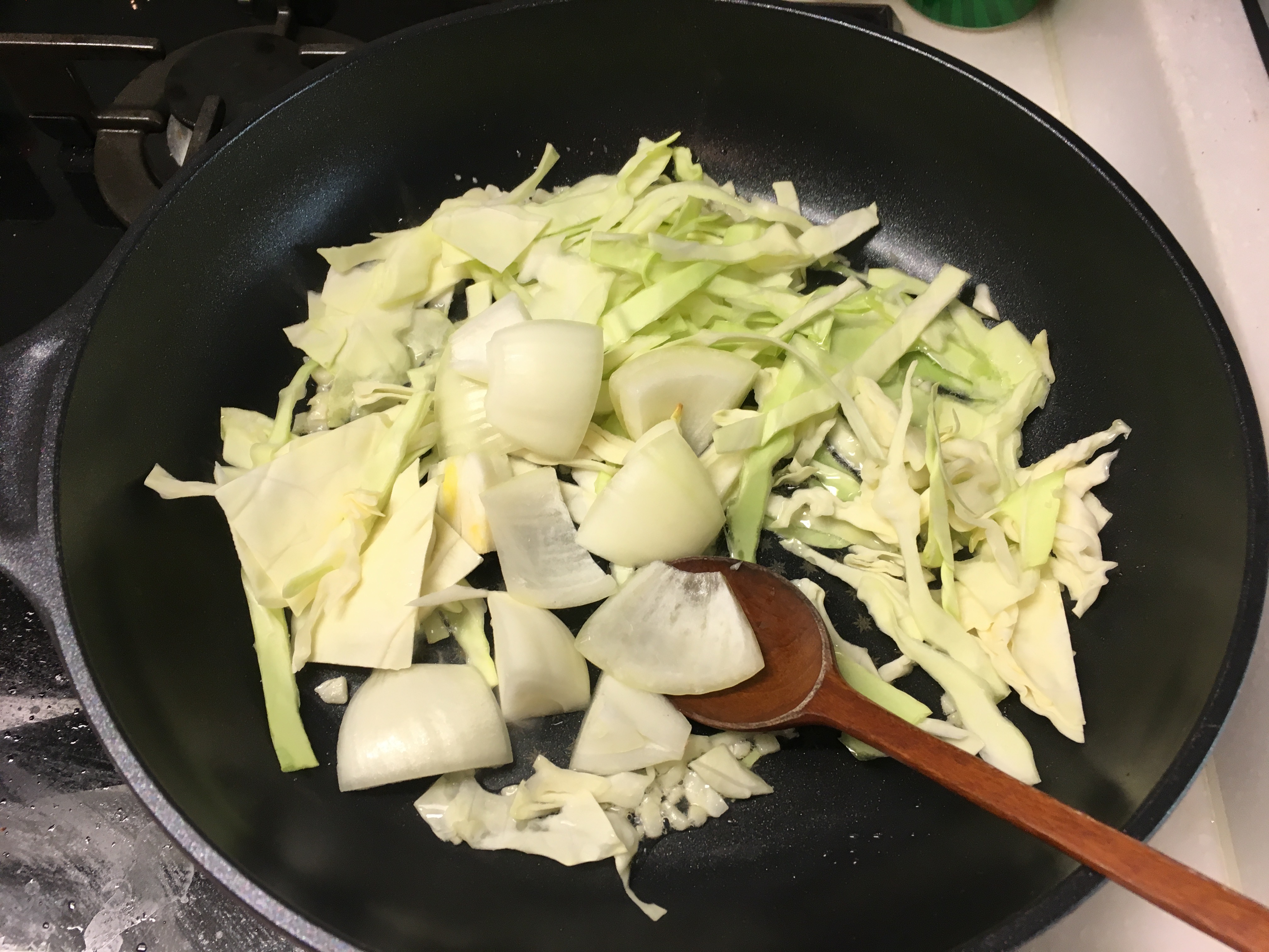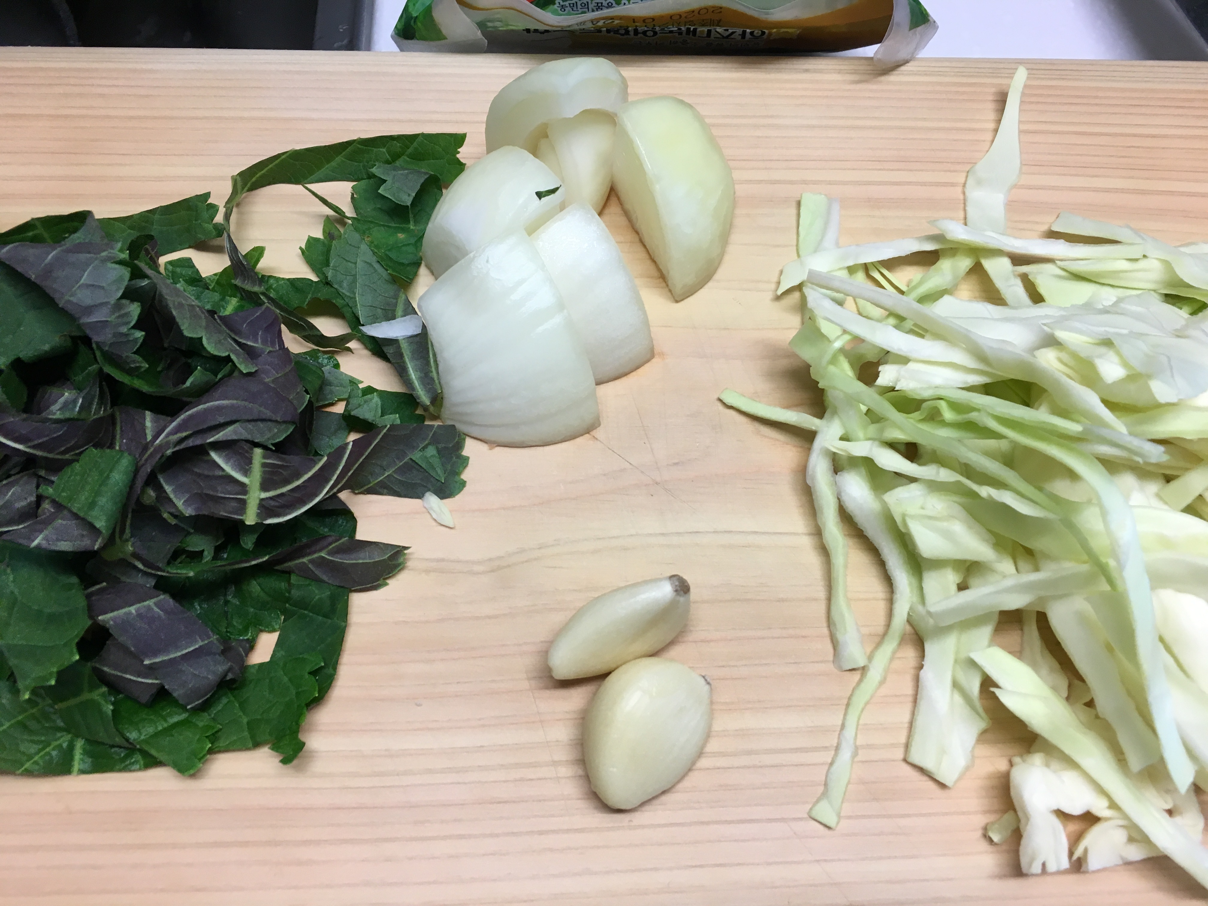 양파 반쪽, 마늘(다진마늘), 양배추, 깻잎 정도 들어갑니다.