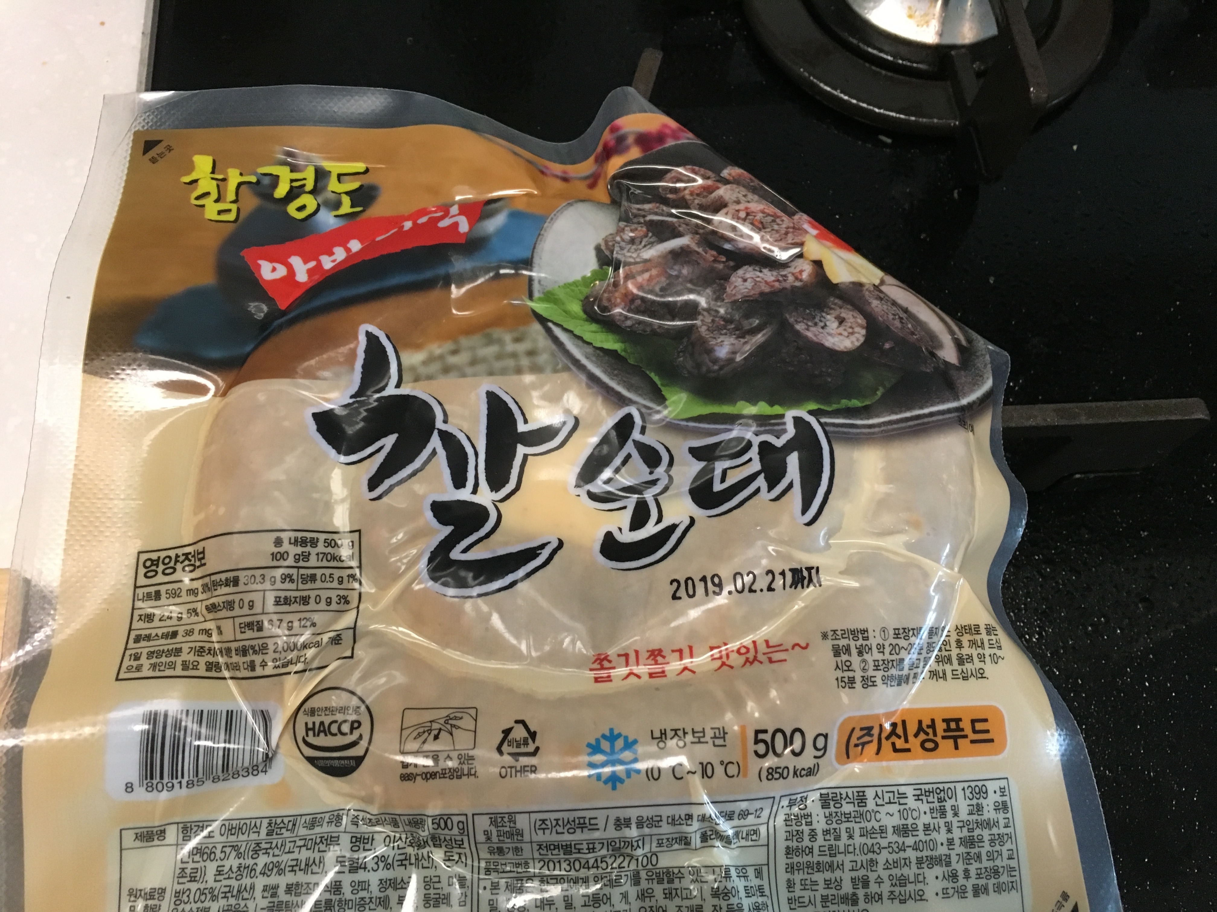 오늘의 메인재료 순대입니다.(유통기한이 한참 지났네요;;; 죽진 않겠죠.)