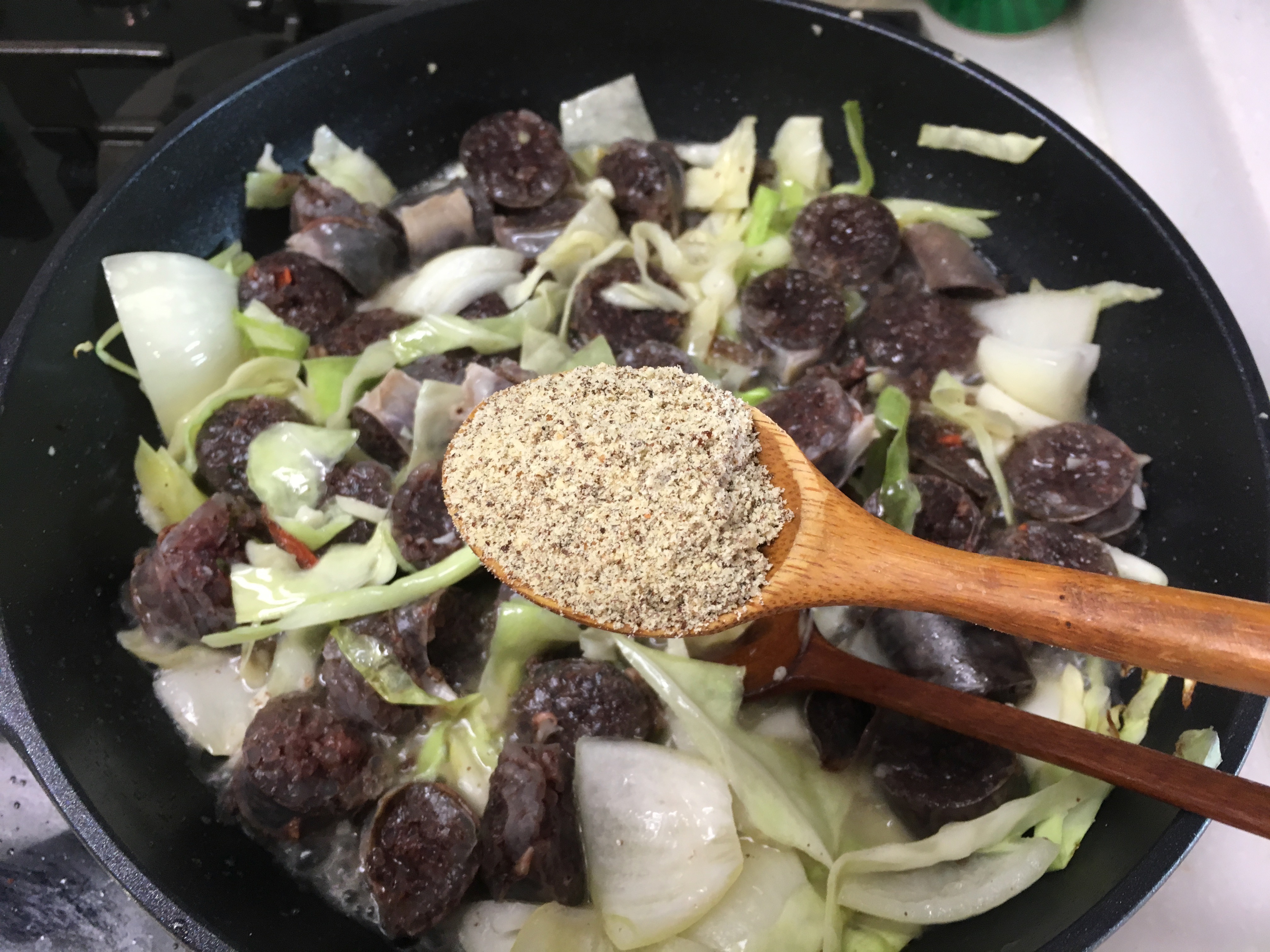오늘 요리의 필수! 들깨가루를 한숟가락 가득 넣습니다.