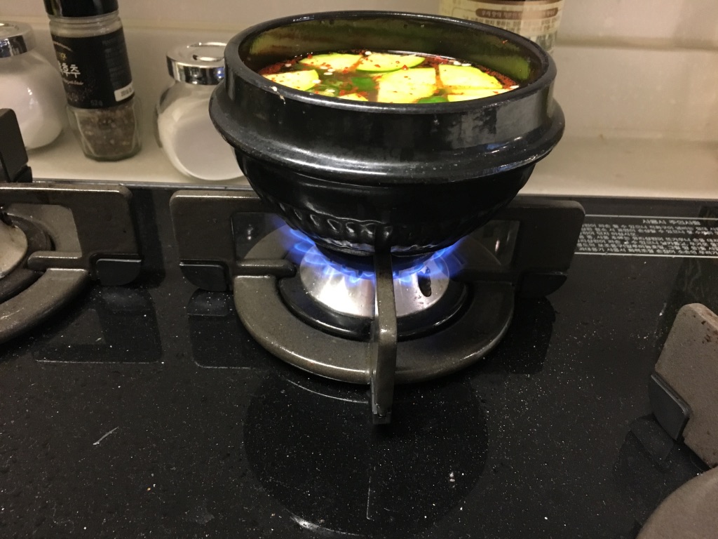 본가에서 제일 작은 뚝배기를 얻어옵니다.