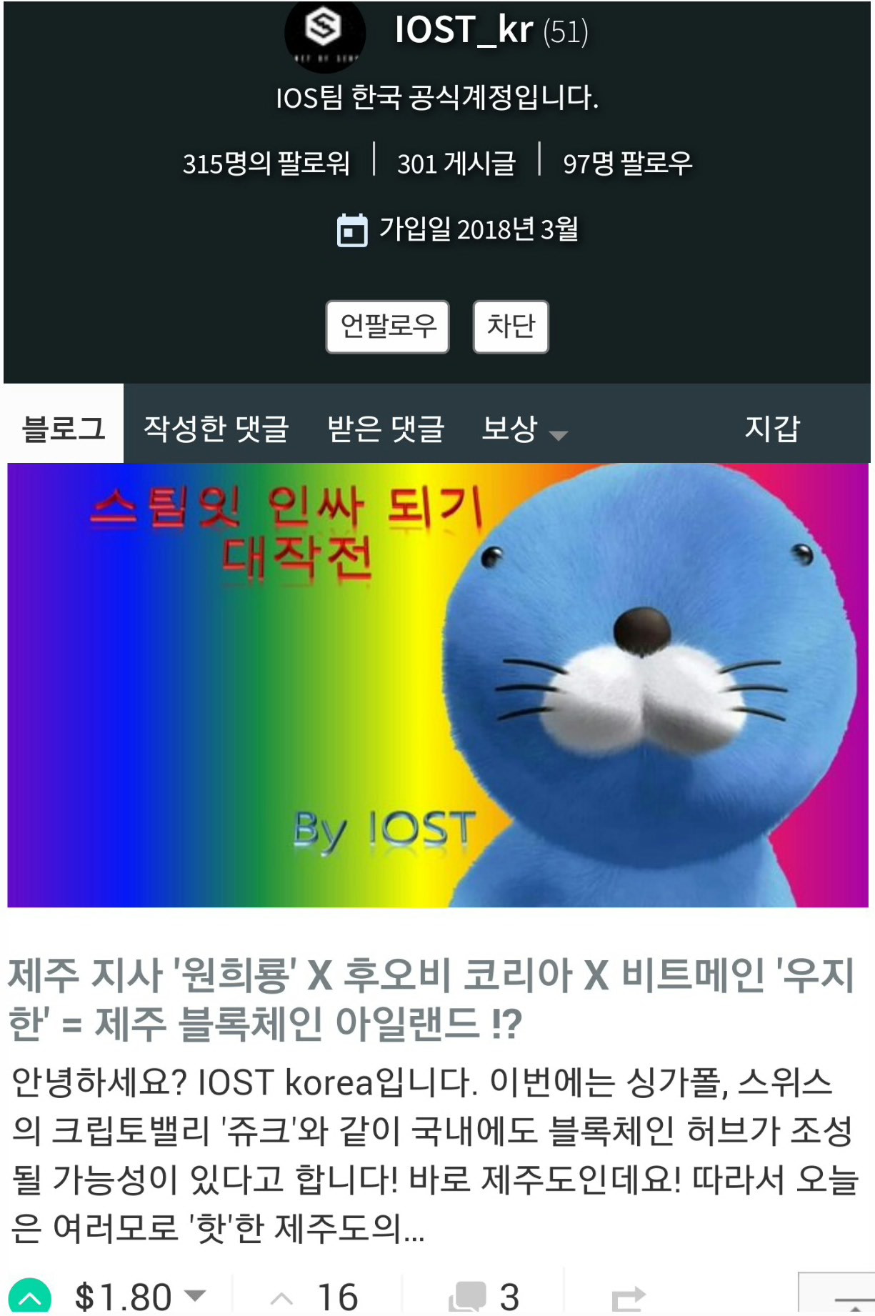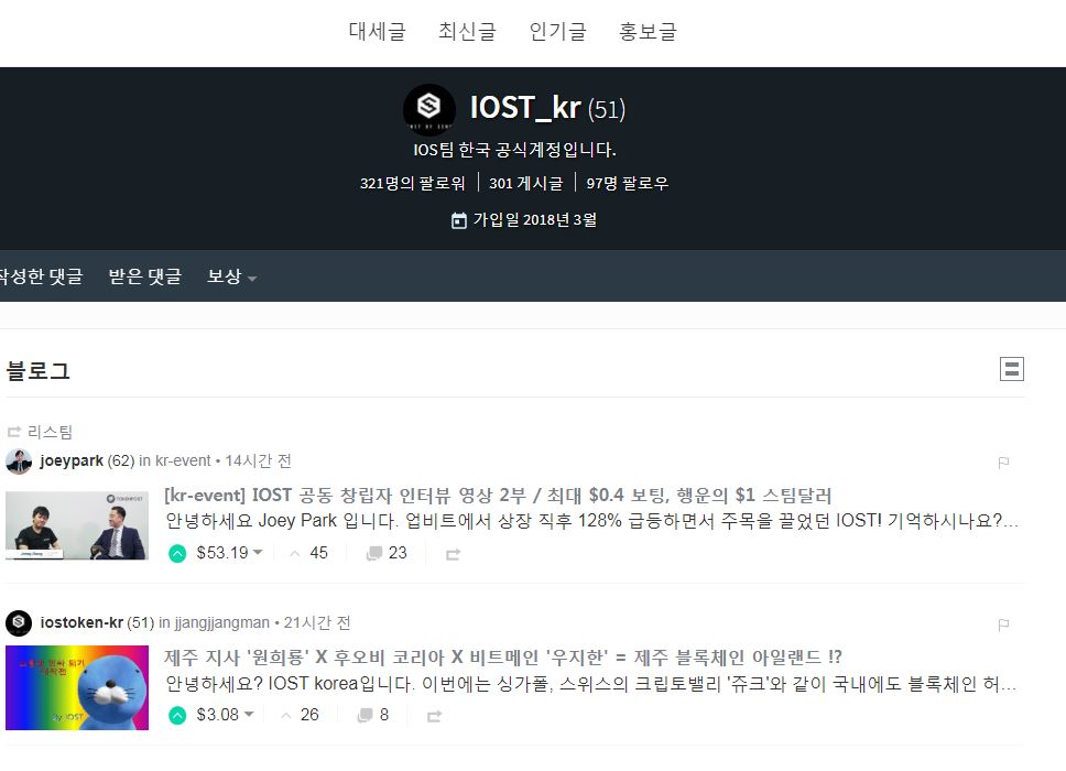 [kr-event] IOST 공동 창립자 인터뷰 영상 2부 / 최대 $0.4 보팅, 행운의 $1 스팀달러