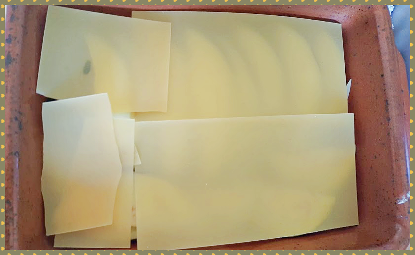 여기에 라쟈냐 시트를 깔아줍니다. 삐뚤해도 괜찮아요 완성되면 겉은 보이지 않거든요.