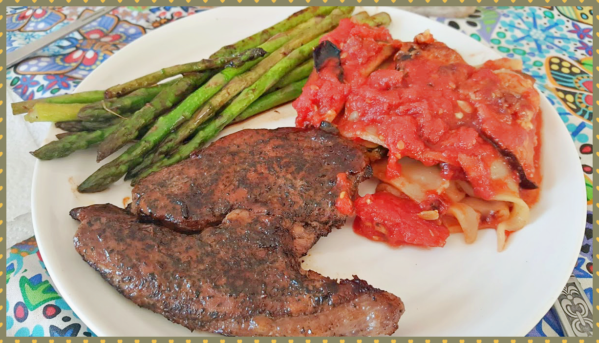 양고기 아스파라거스 토마토 가지 호박 저녁 식사가 만찬이네요.