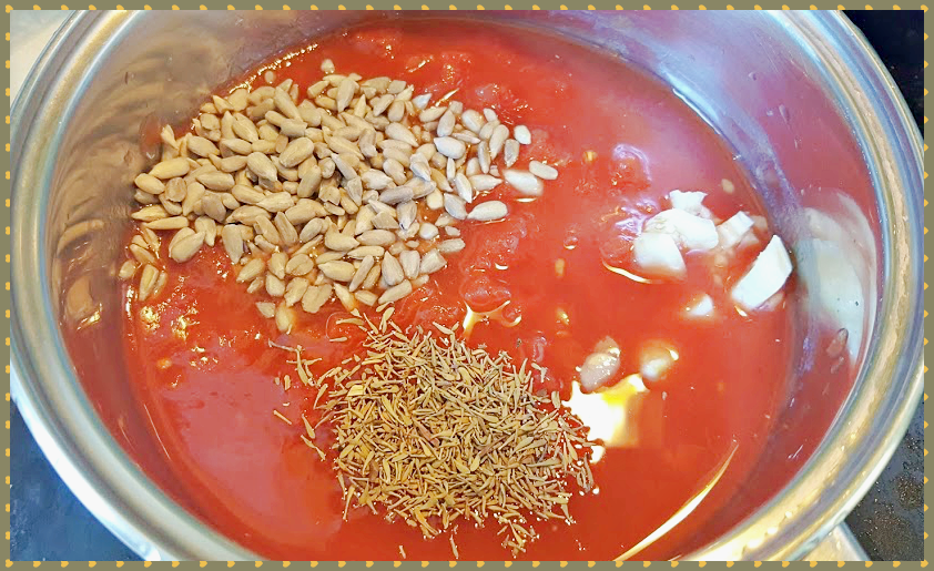 라쟈냐 많이들 좋아하시죠? 고기와 파스타 그리고 크림,토마토 소스가 어울어진 매력적인 맛에 저도 가끔 해먹어요. 오늘은 고기빼고 야채들로만 한번 만들어 보려구요. 오늘의 저녁 메뉴는 최대한 간단하게 준비하려고 하니 야매 라쟈냐라 해도 할말이 없네요. 캔 토마토를 냄비에 붙고 여기에 설탕 1, 소금1, 마늘, 해바라기씨 그리고 허브를 넣어주고 한소큼 끓입니다. 제가 쓴 캔토마토엔 다른 간이 되있지 않아요. 유럽에선 쉽게 구할수 있는 건강한 토마토 소스 랍니다.