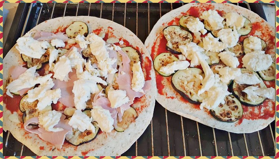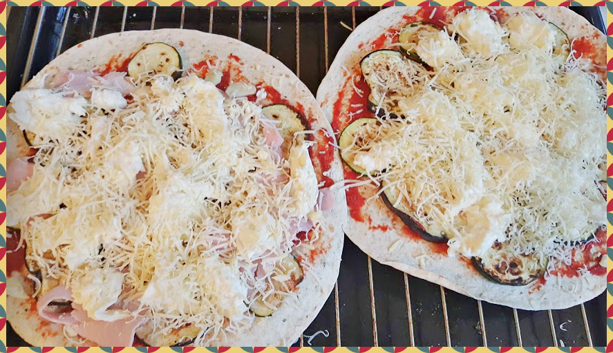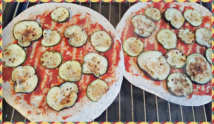 구운 가지와 호박은 토틸라 위에 골고루 올려줍니다.