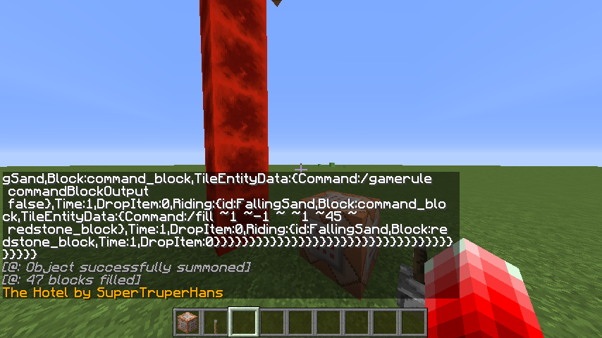 7. 스폰 알은 "1회용"입니다. 만약 호텔을 더 만들고 싶으시다면, 맨 처음의 커맨드 블럭을 재실행시키면 됩니다.