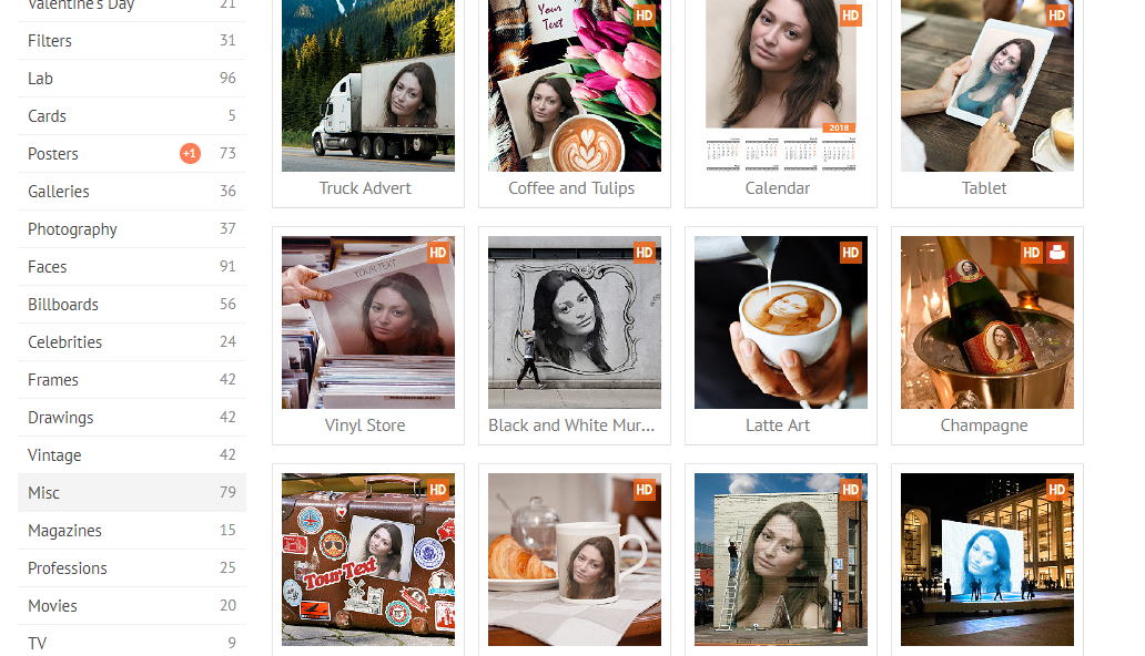 바로 이곳인데, 600개 정도 되는 배경이미지를 사용하여 원하는 사진을 편집 할 수 있지.
